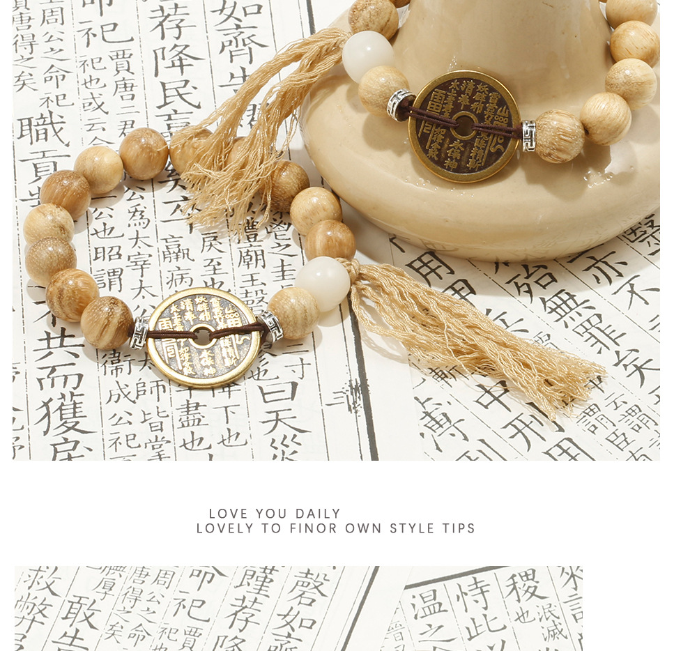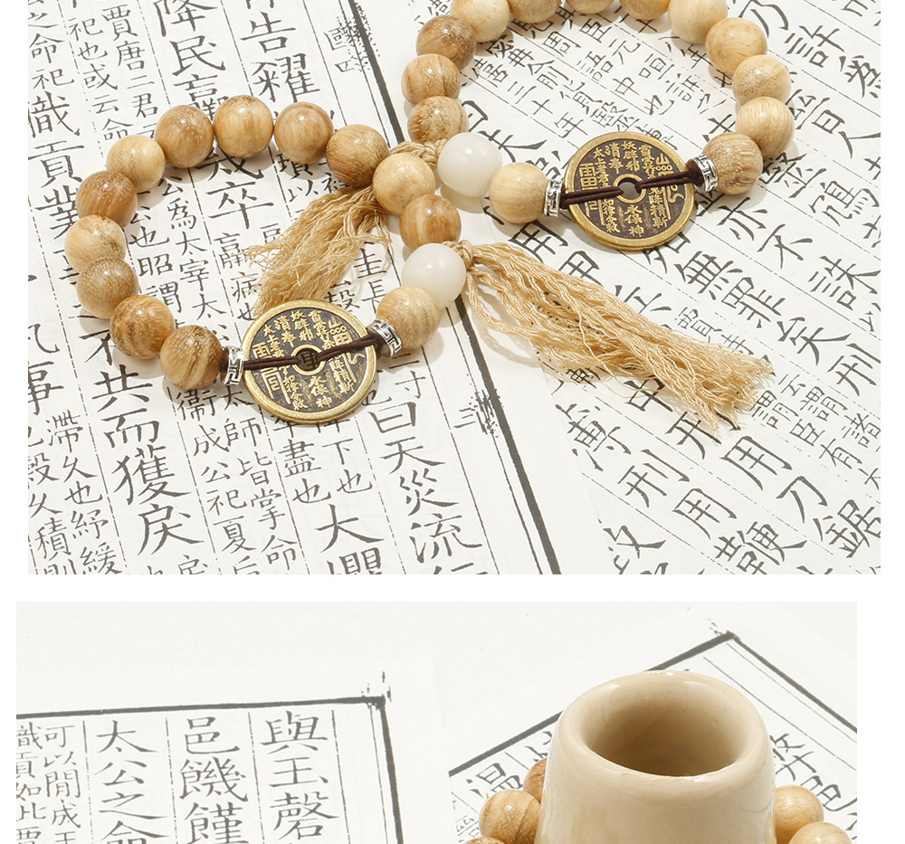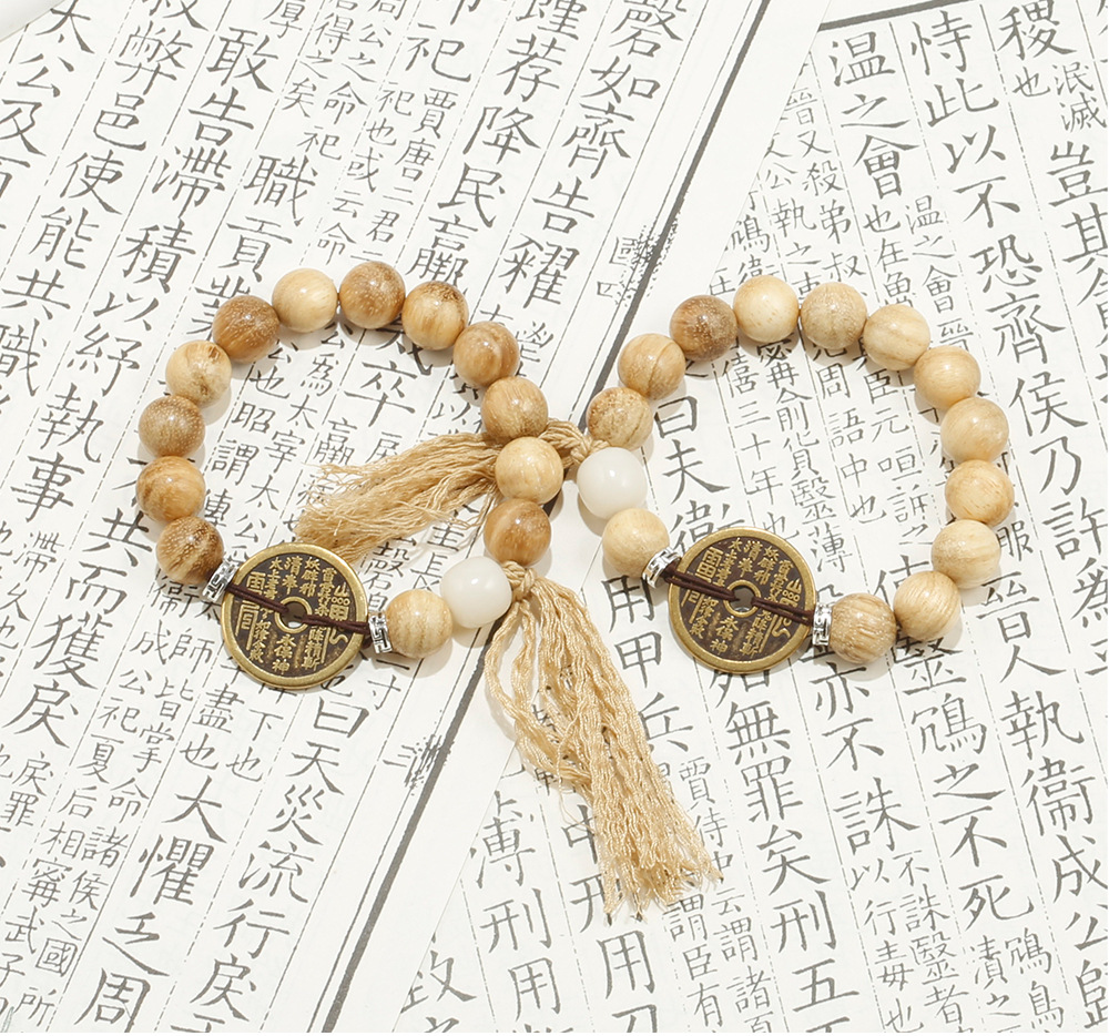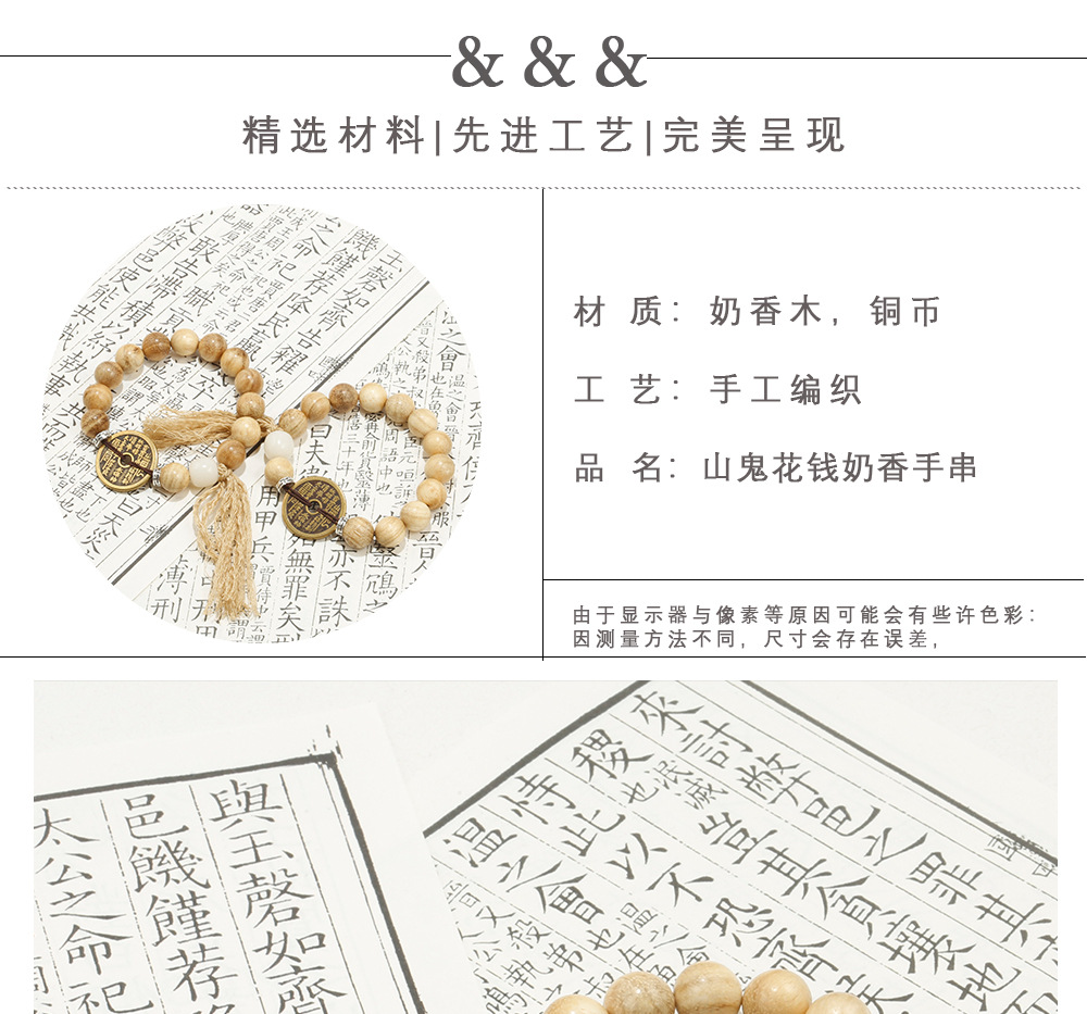 抖音同款奶香木珠山鬼花钱手串复古文艺气质手链百搭手编小众设计