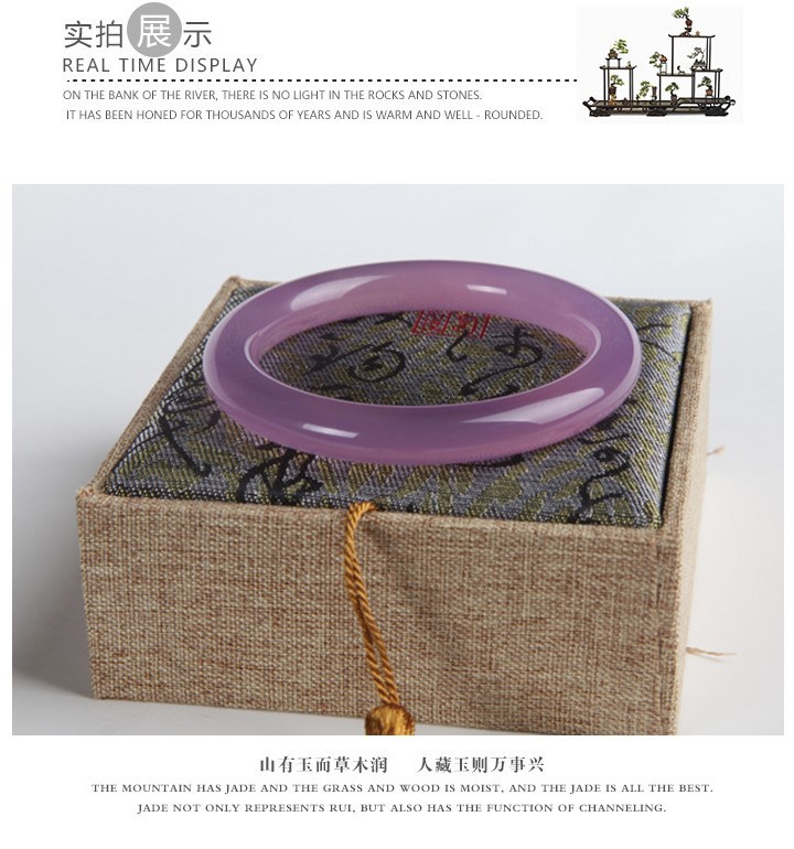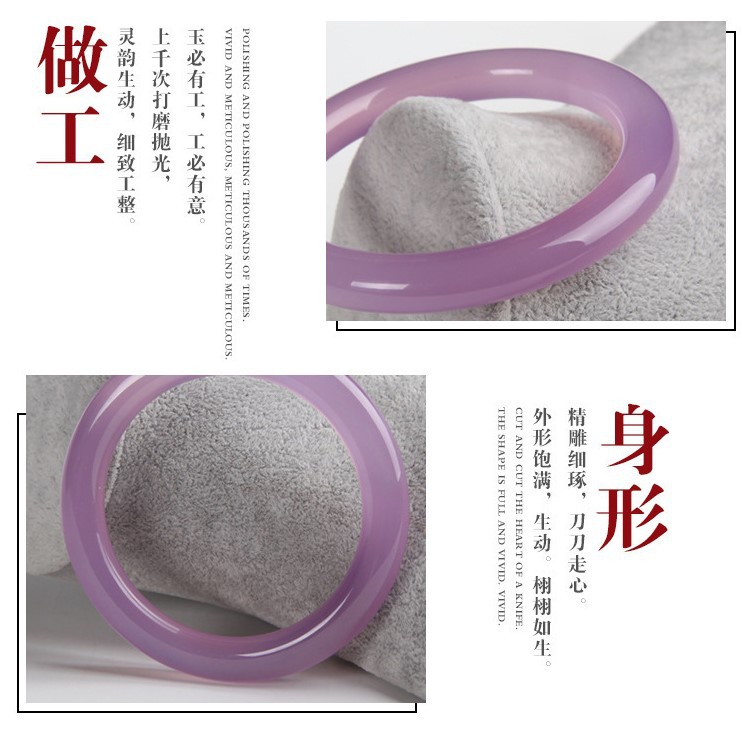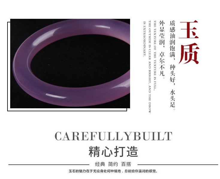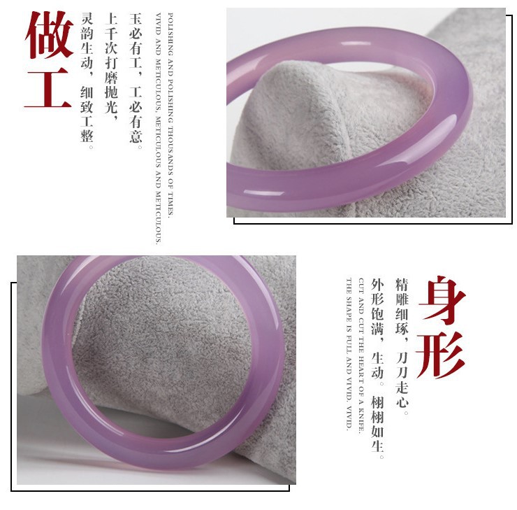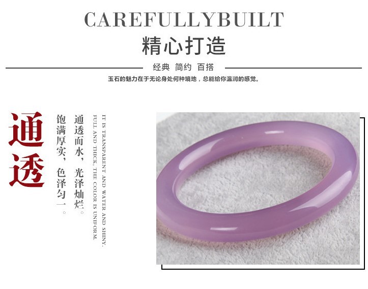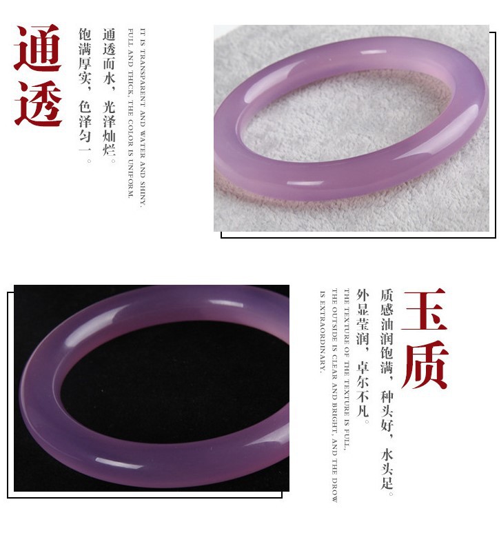 6mm天然冰种粉紫色芙蓉手镯圆条细条叮当镯玉髓美人镯子女款玛瑙