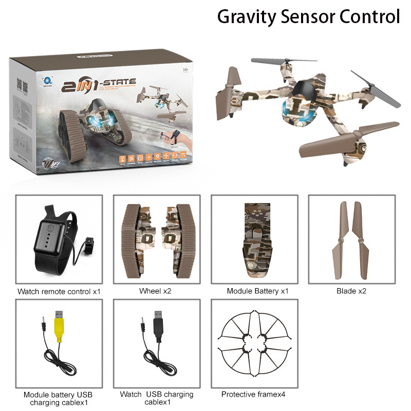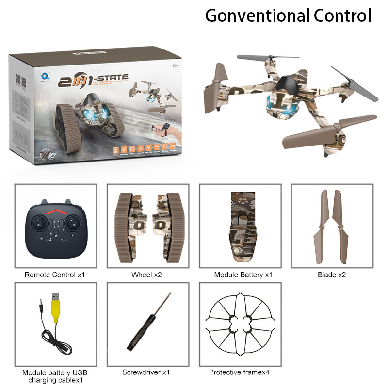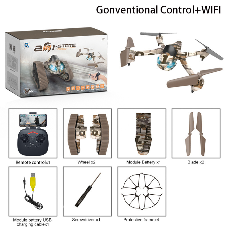 跨境新款遥控坦克飞机四轴飞行器陆空二合一WIFI摄像无人机