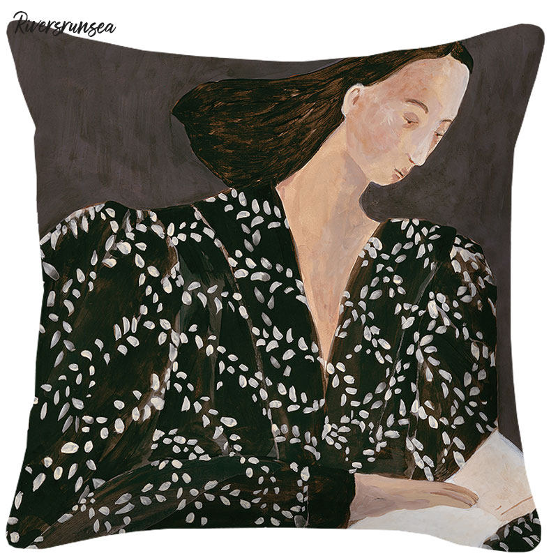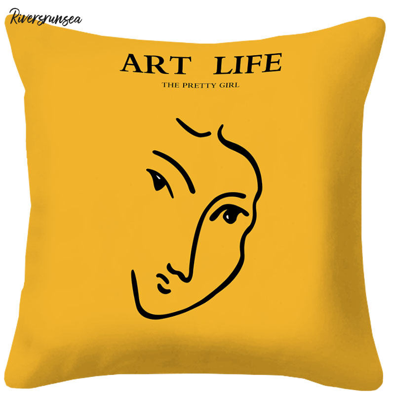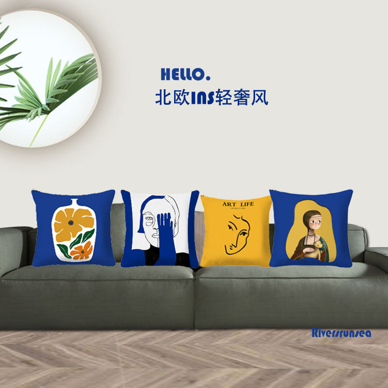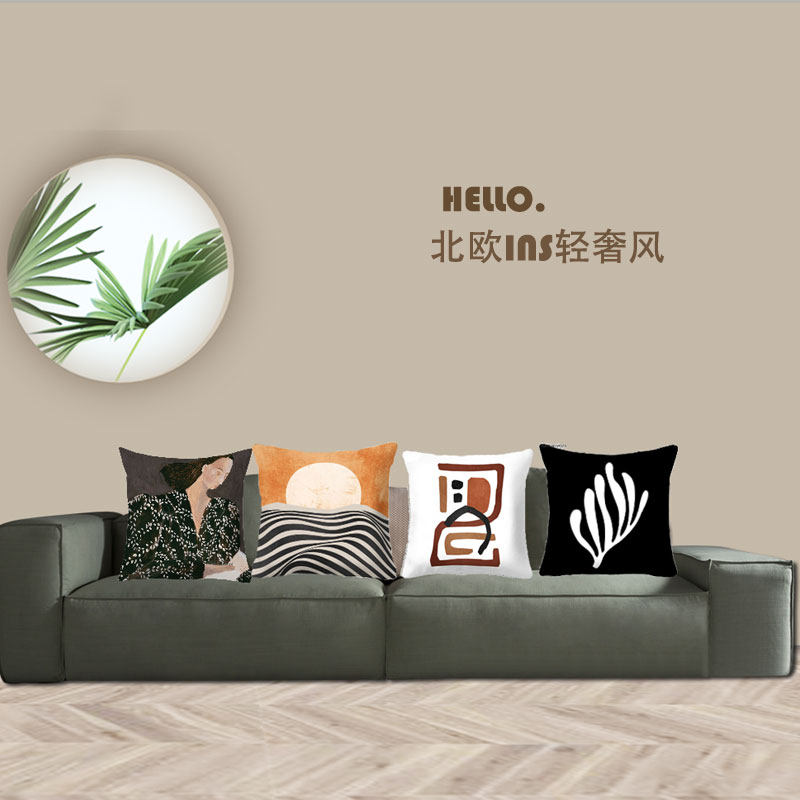 ins风沙发腰枕套汽车靠背原创欧简轻奢几何抽象人物文艺组合抱枕
