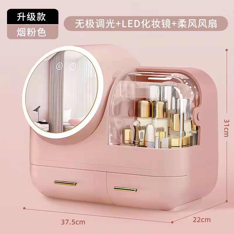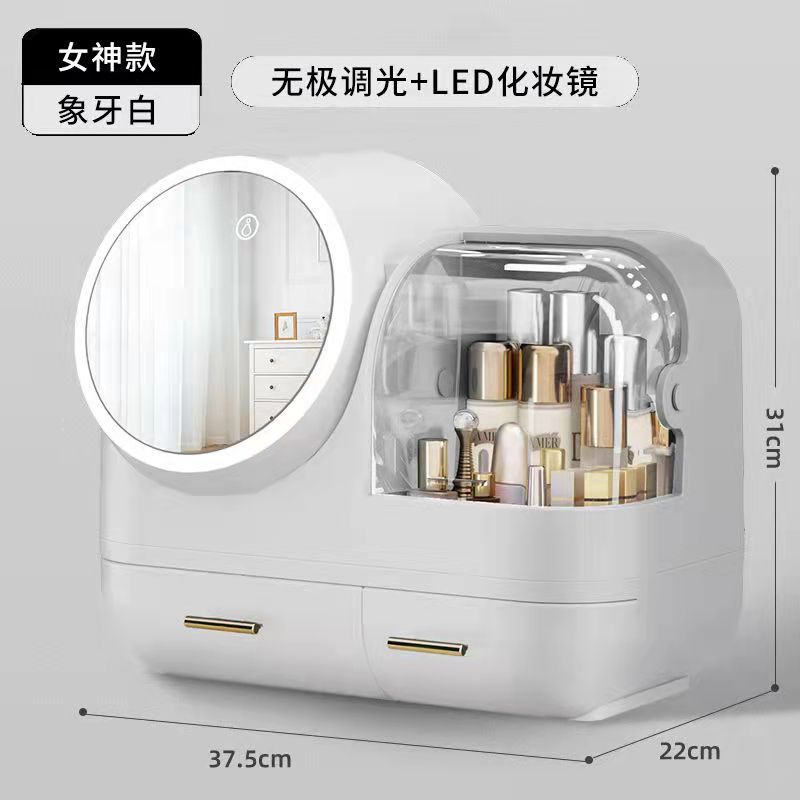 网红化妆品收纳盒带LED化妆镜创意桌面防尘护肤品梳妆台收纳箱