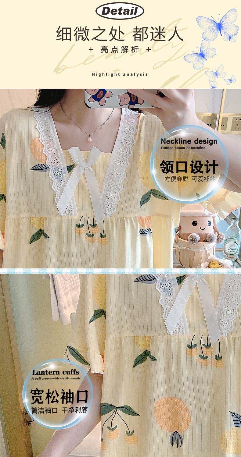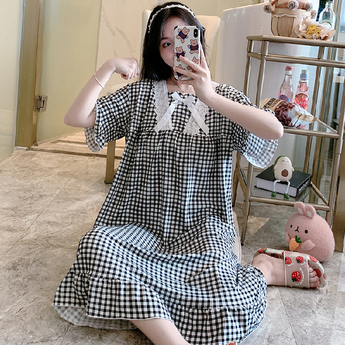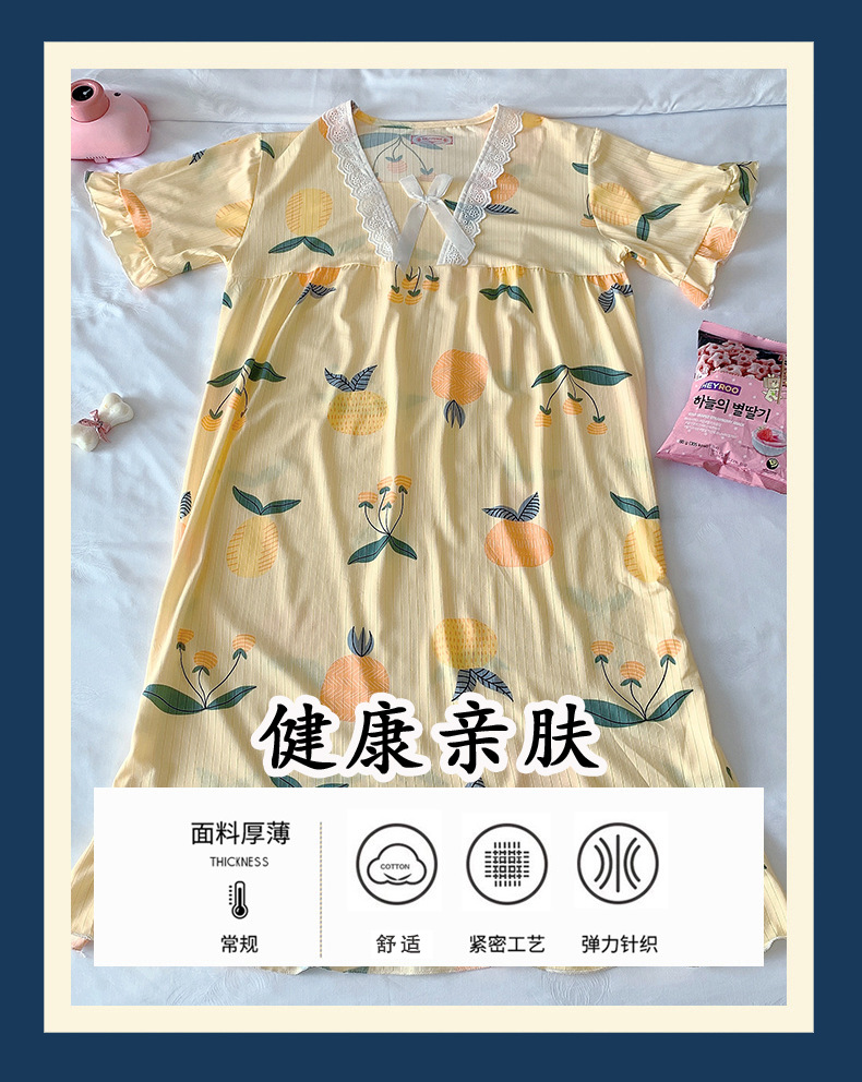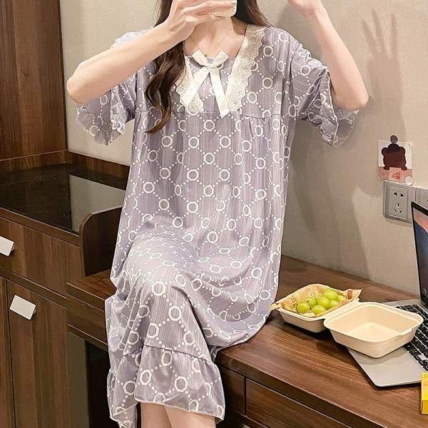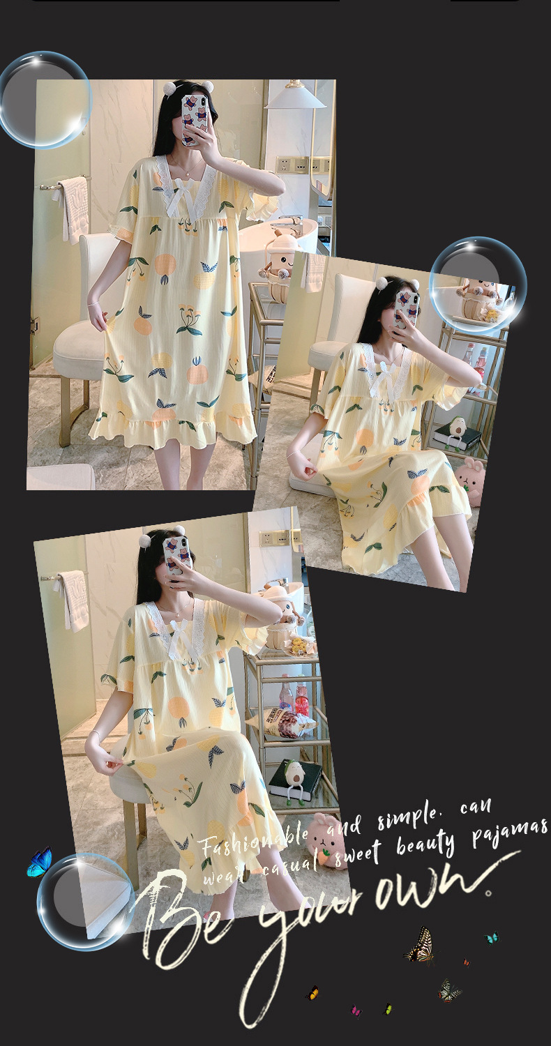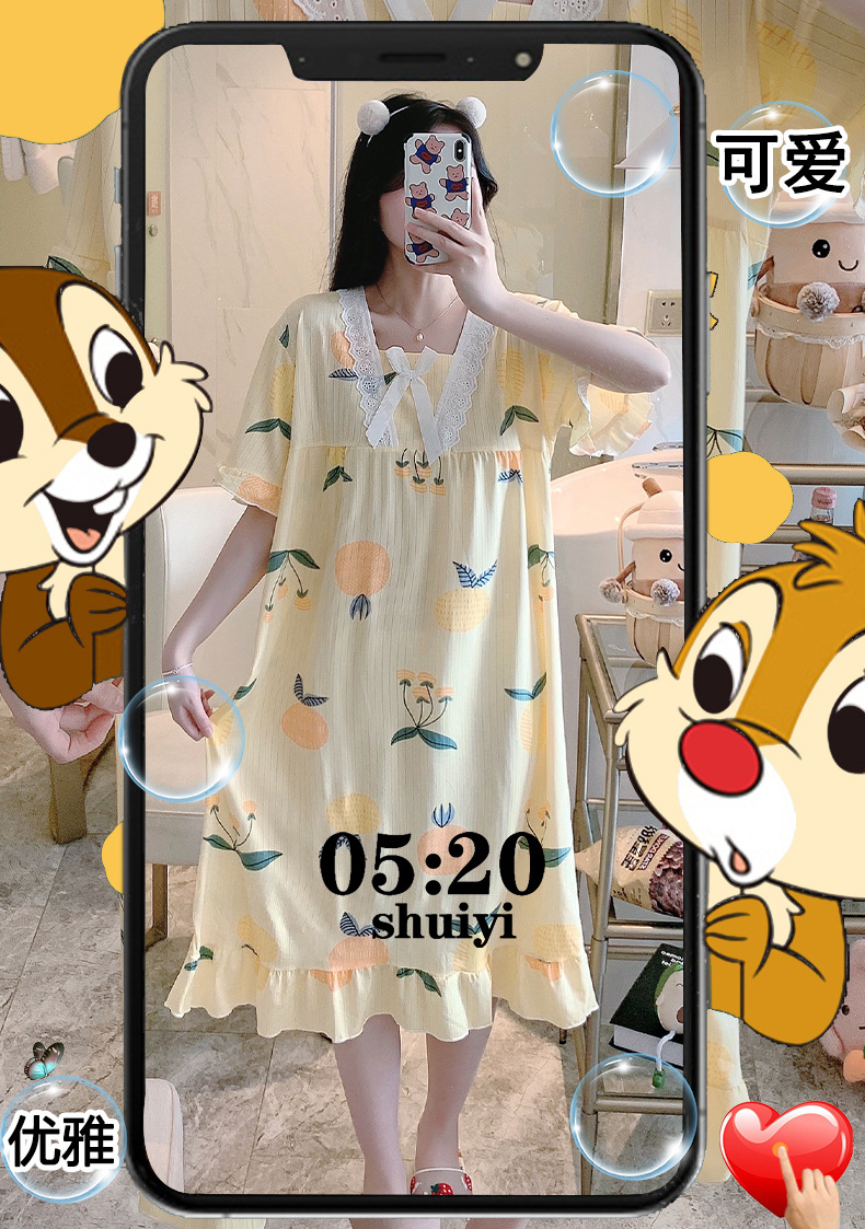 睡衣女夏抽条大码睡裙女夏短袖加肥码胖MM200斤弹力加肥短袖裙