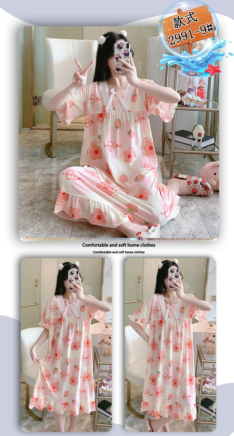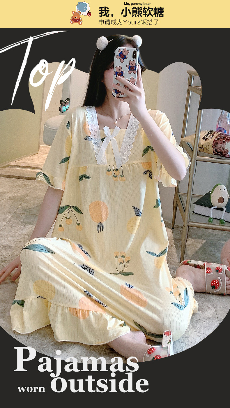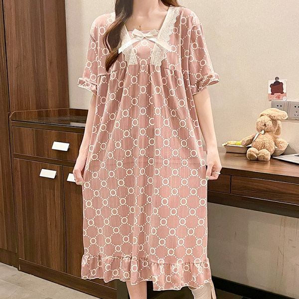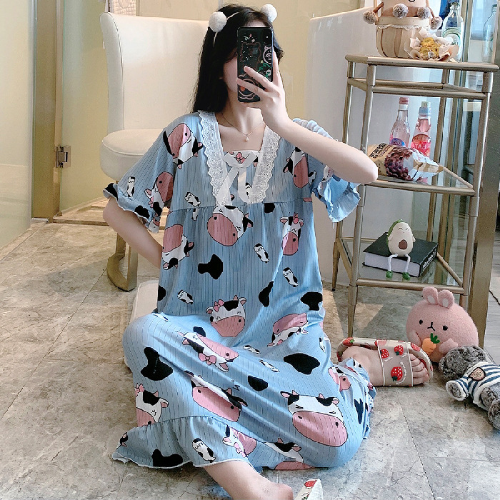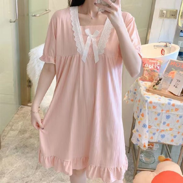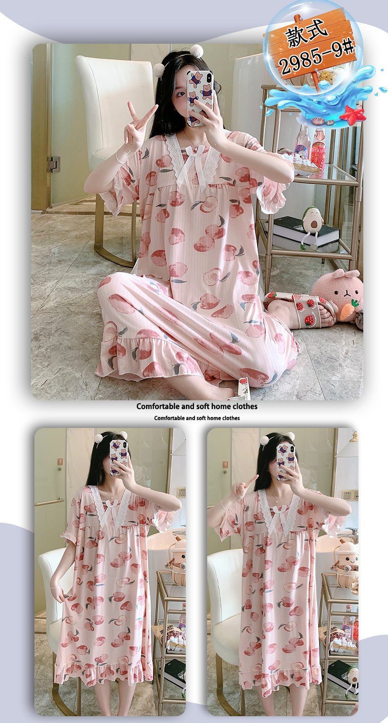 睡衣女夏抽条大码睡裙女夏短袖加肥码胖MM200斤弹力加肥短袖裙