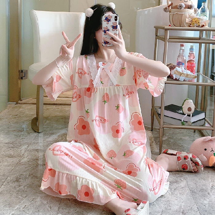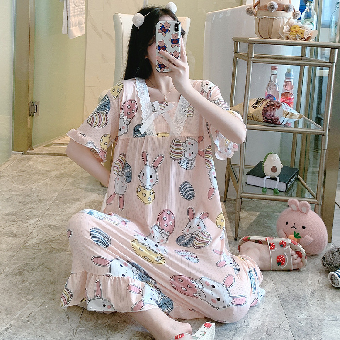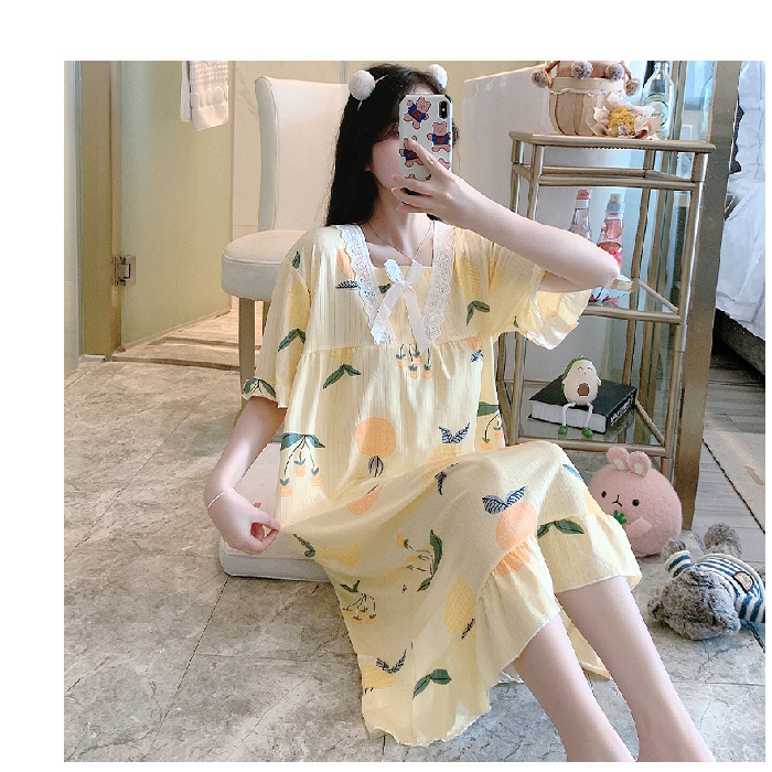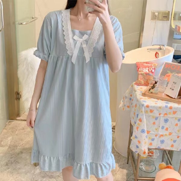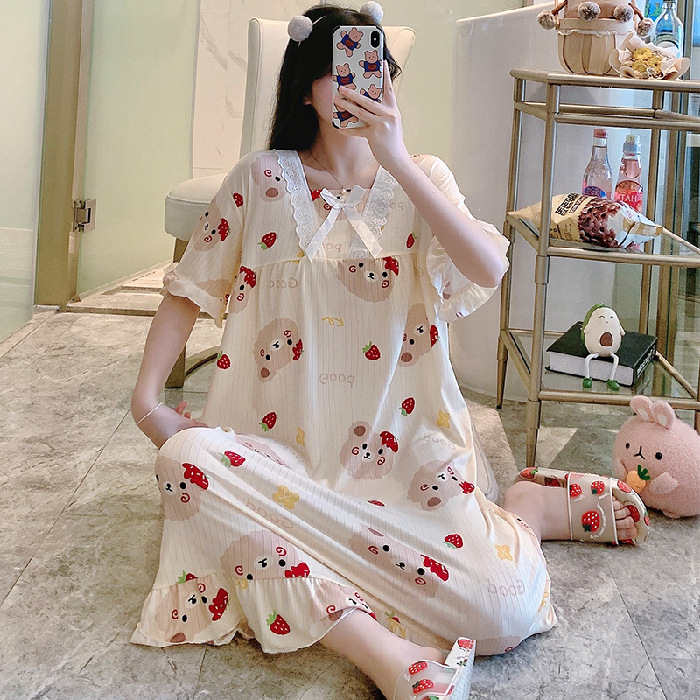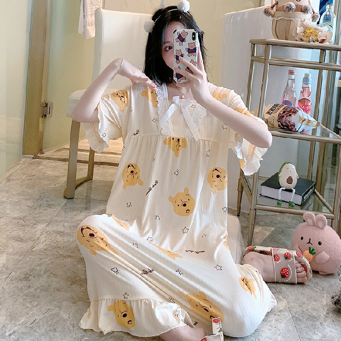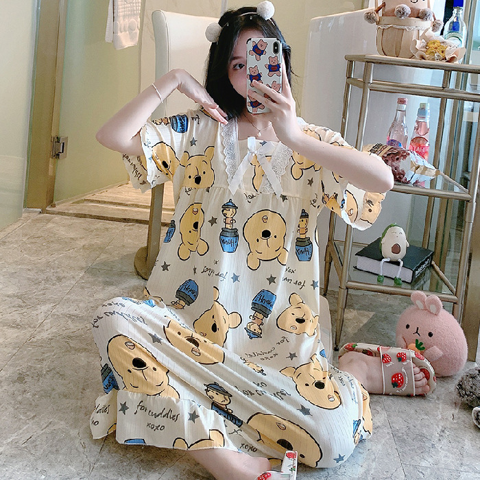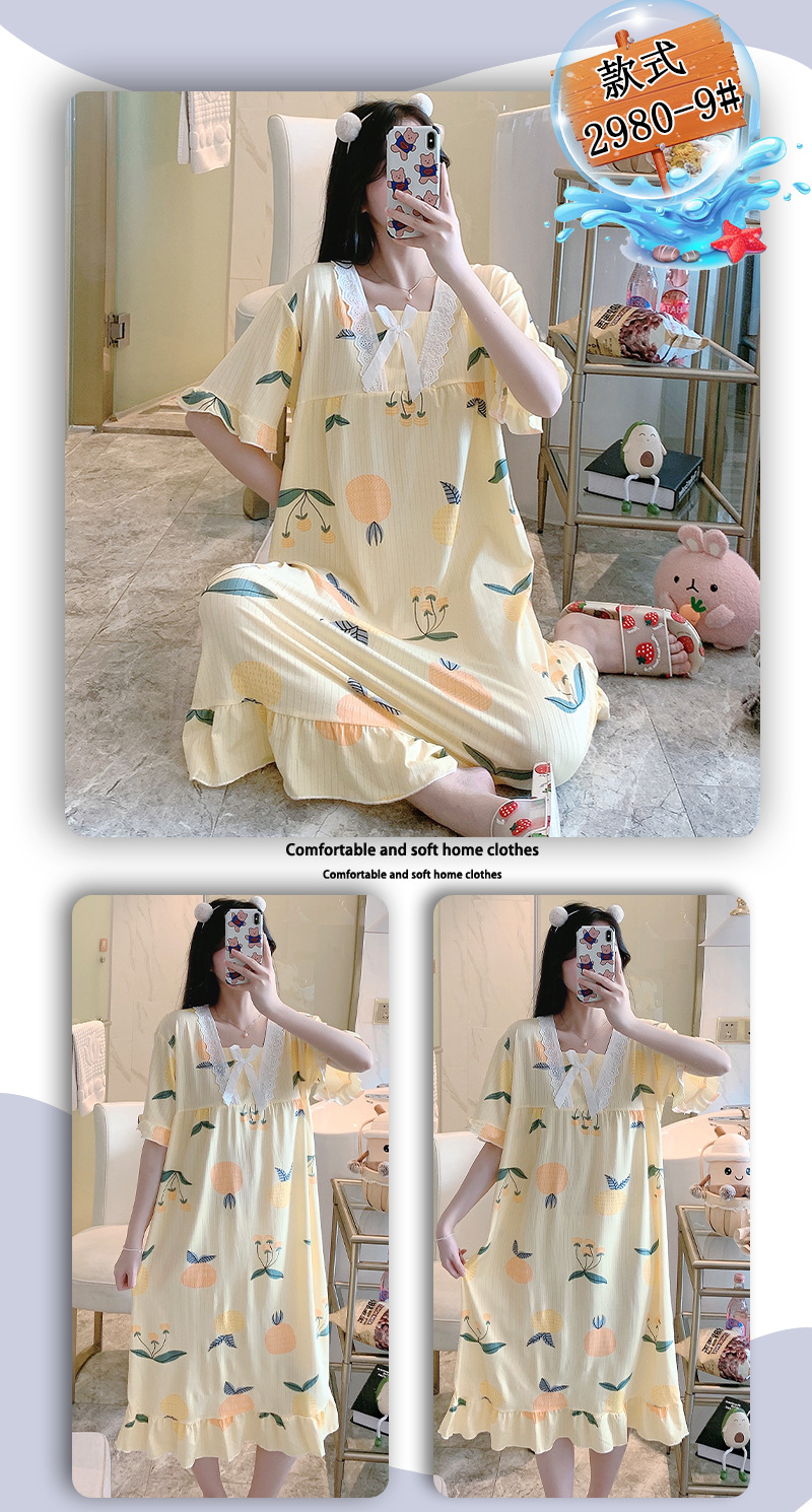 睡衣女夏抽条大码睡裙女夏短袖加肥码胖MM200斤弹力加肥短袖裙