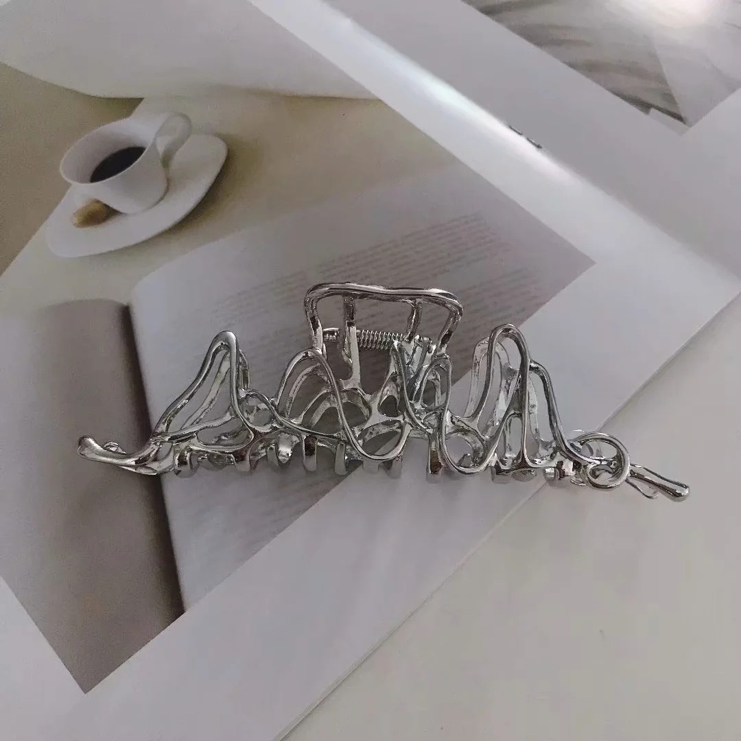 金属液态合金抓夹ins韩国复古时尚发夹女头饰弧形发抓