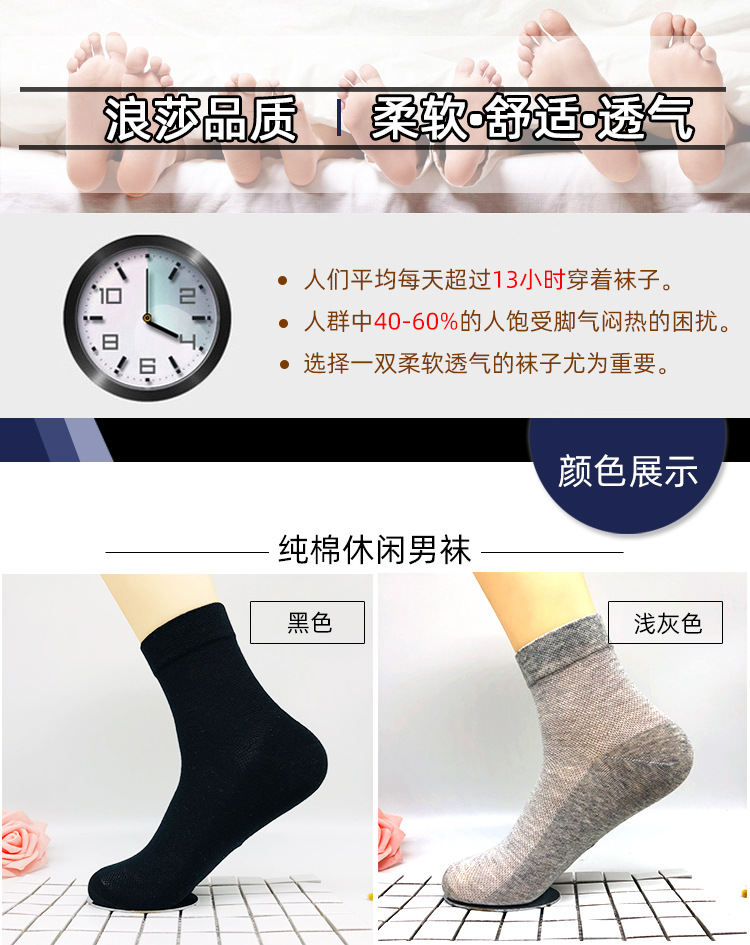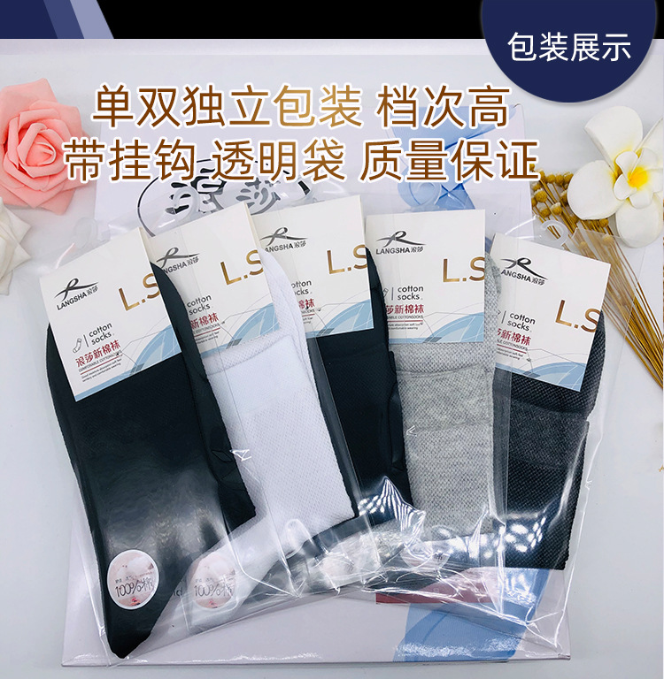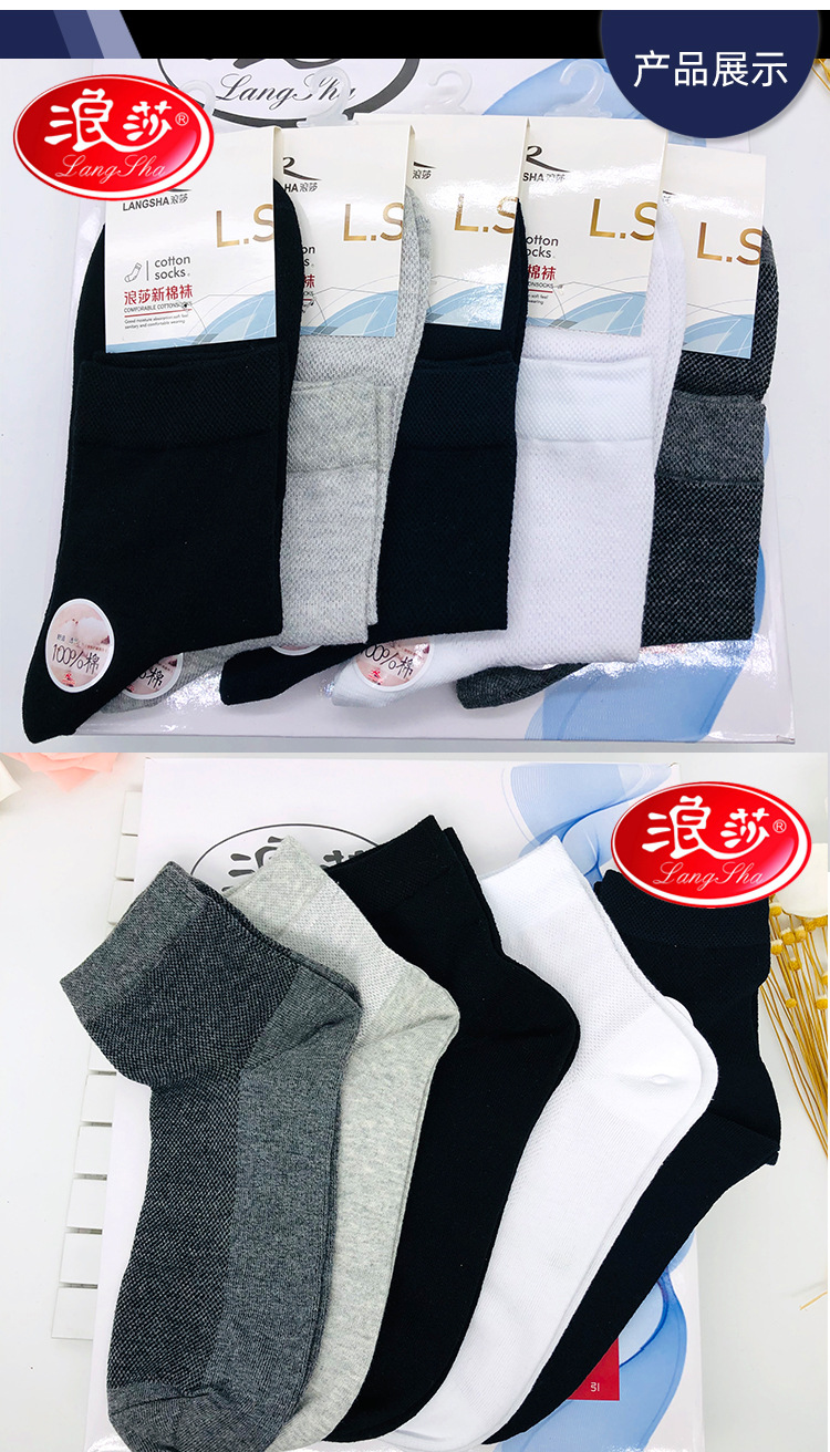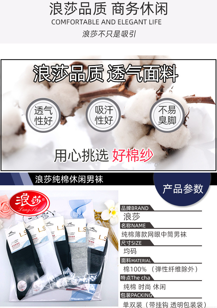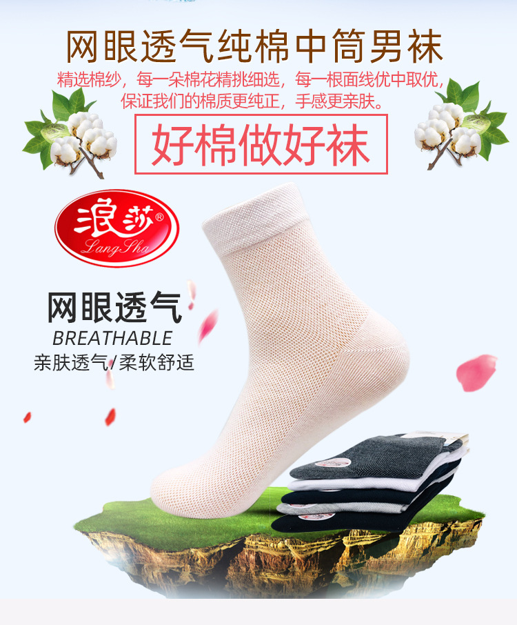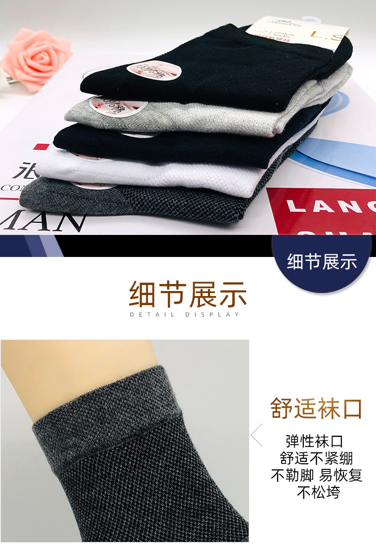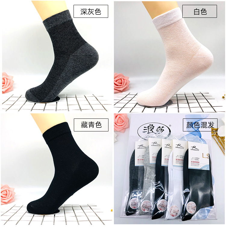 袜子男士夏季薄款纯棉吸汗浪莎中筒男袜春夏网眼透气超薄棉袜批发