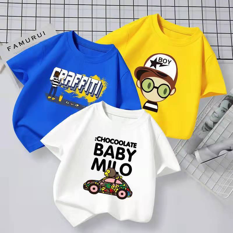 外贸尾单热销1-6元童装短袖T恤圆领卡通小学生棉短袖T恤地摊尾货
