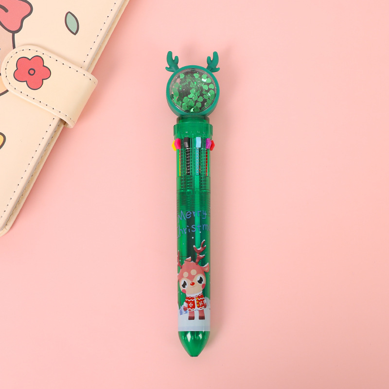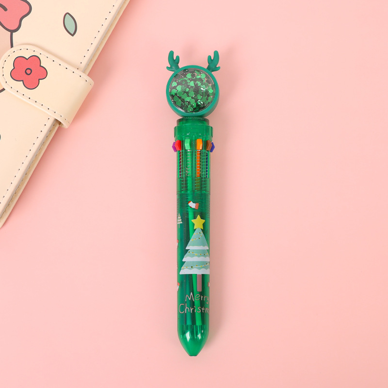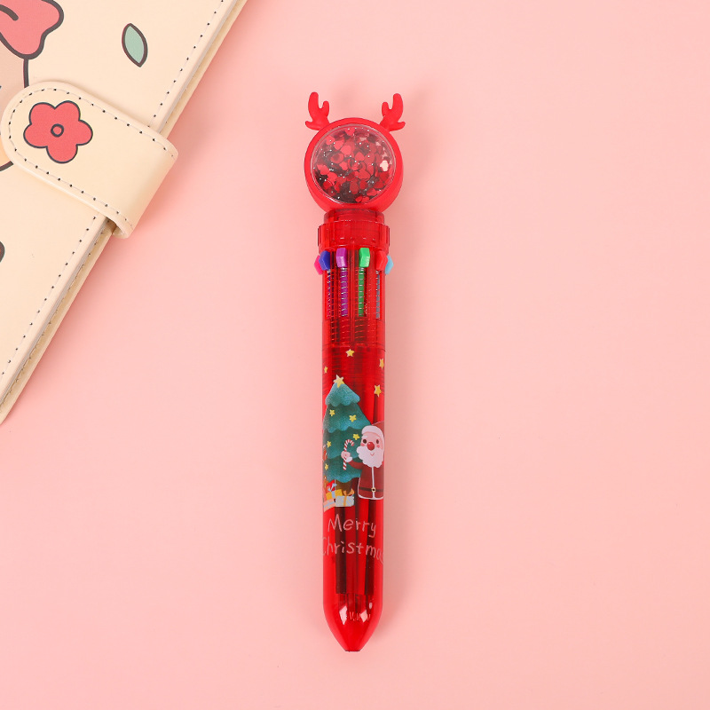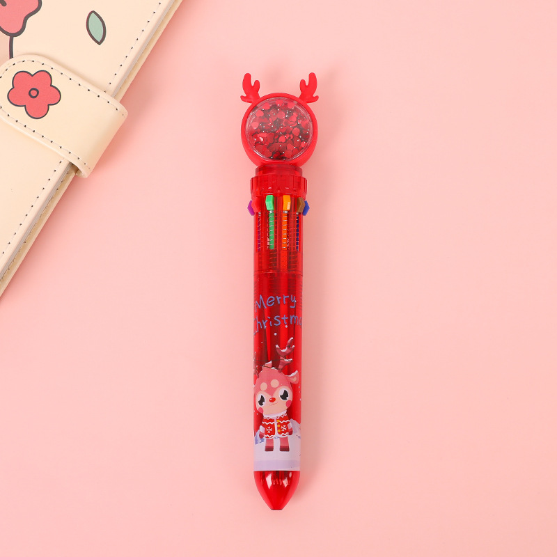 圣诞礼物十色圆珠笔少女心卡通多色按动圆珠笔学生多功能手账记号