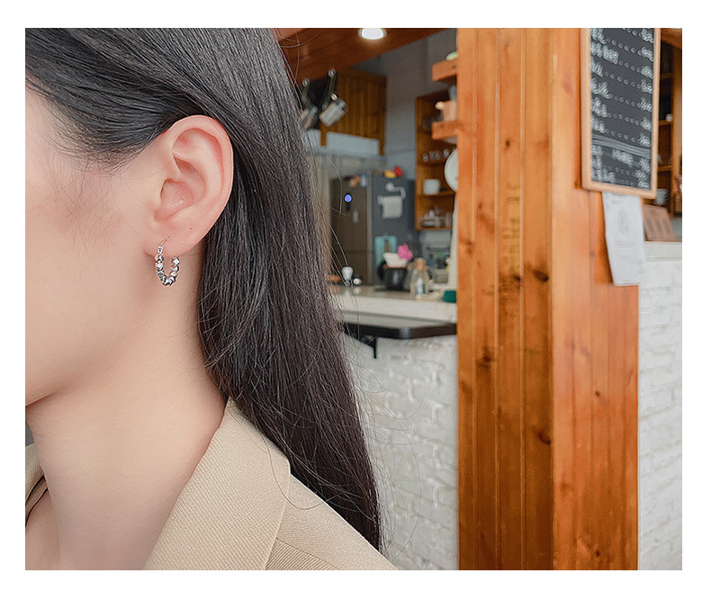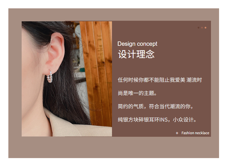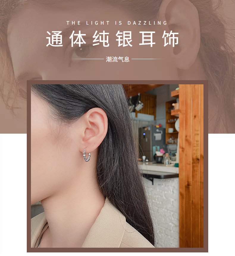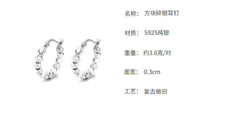 潮晟s925纯银复古小方块碎银耳环ins精致小巧小众设计感百搭耳饰