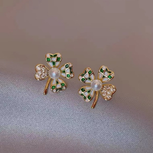 幸运四叶草耳环女2022年新款潮小众设计感高级气质本命年红色耳饰
