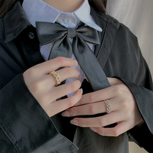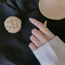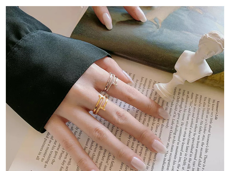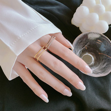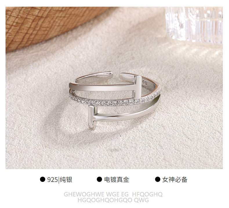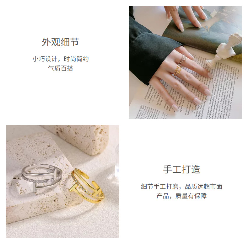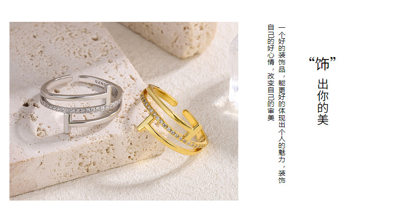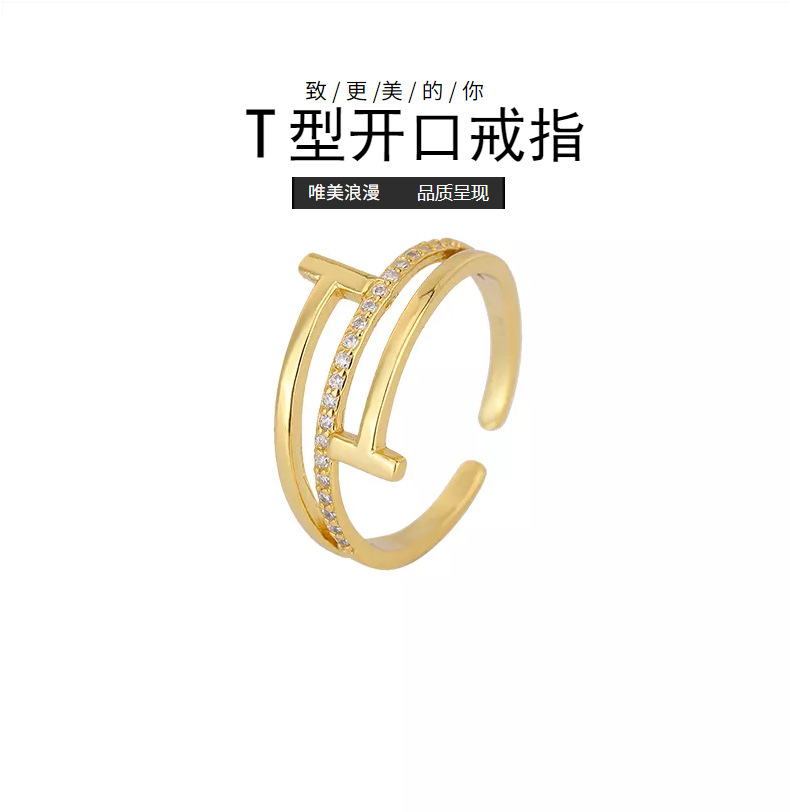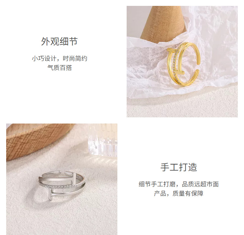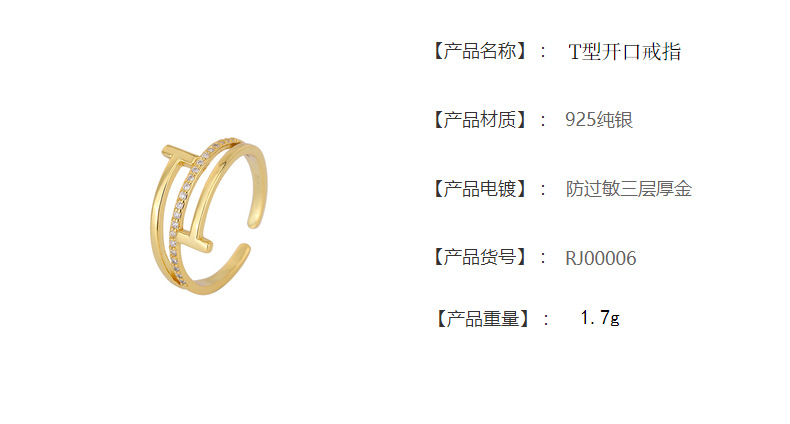 韩国新款轻奢不规则几何小众S925纯银镀18K黄钻石T开口细女戒戒指