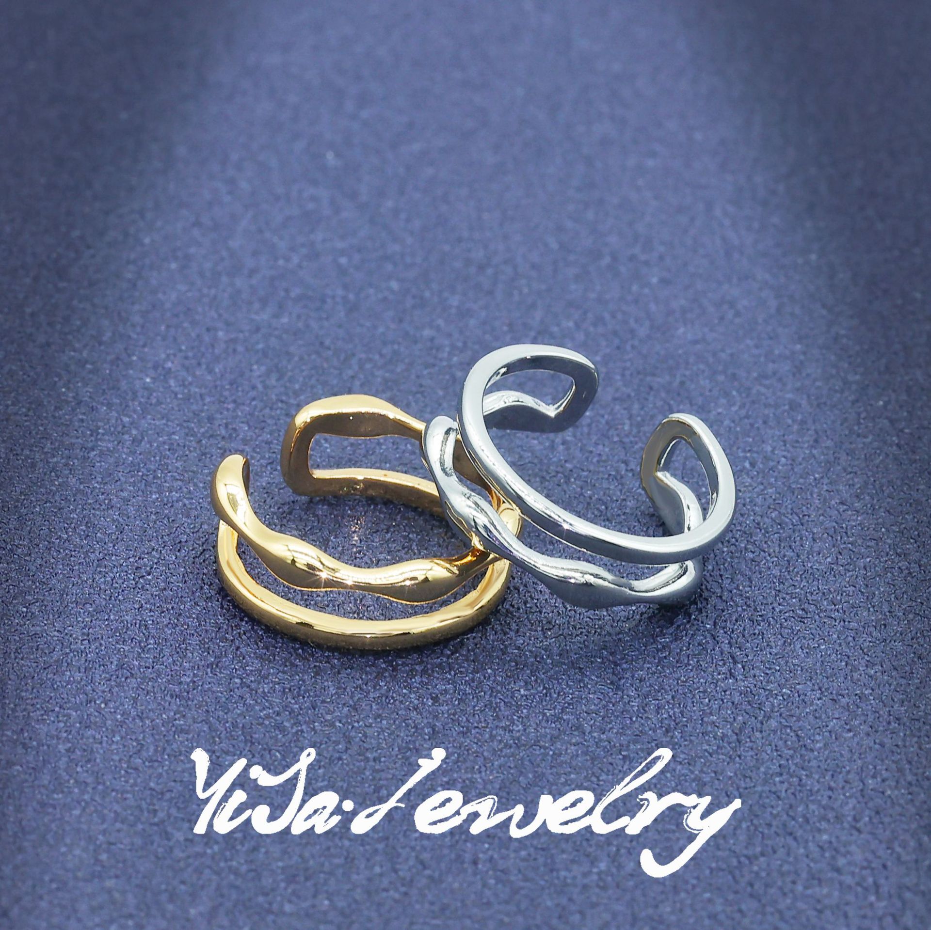 韩国东大门小众设计感指环轻奢风素圈百搭双层开口不规则戒指女