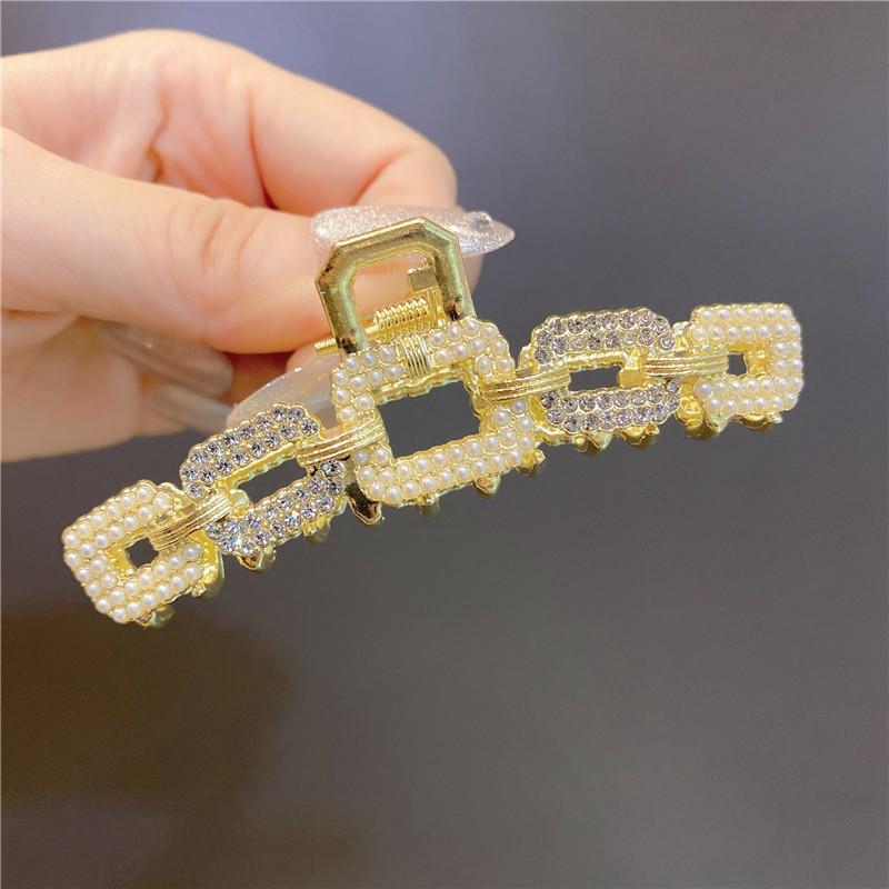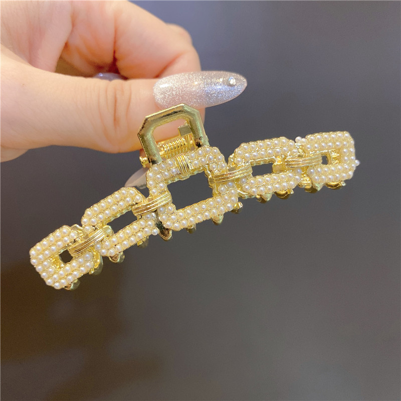复古珍珠大中号鲨鱼夹日系淑女气质后脑勺抓夹发夹发饰