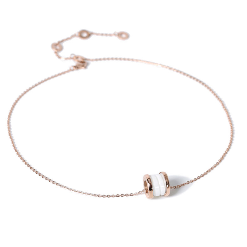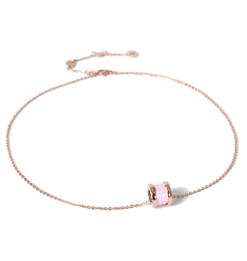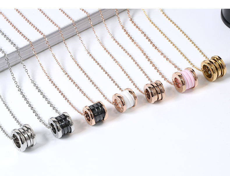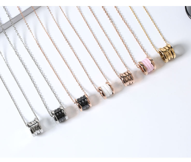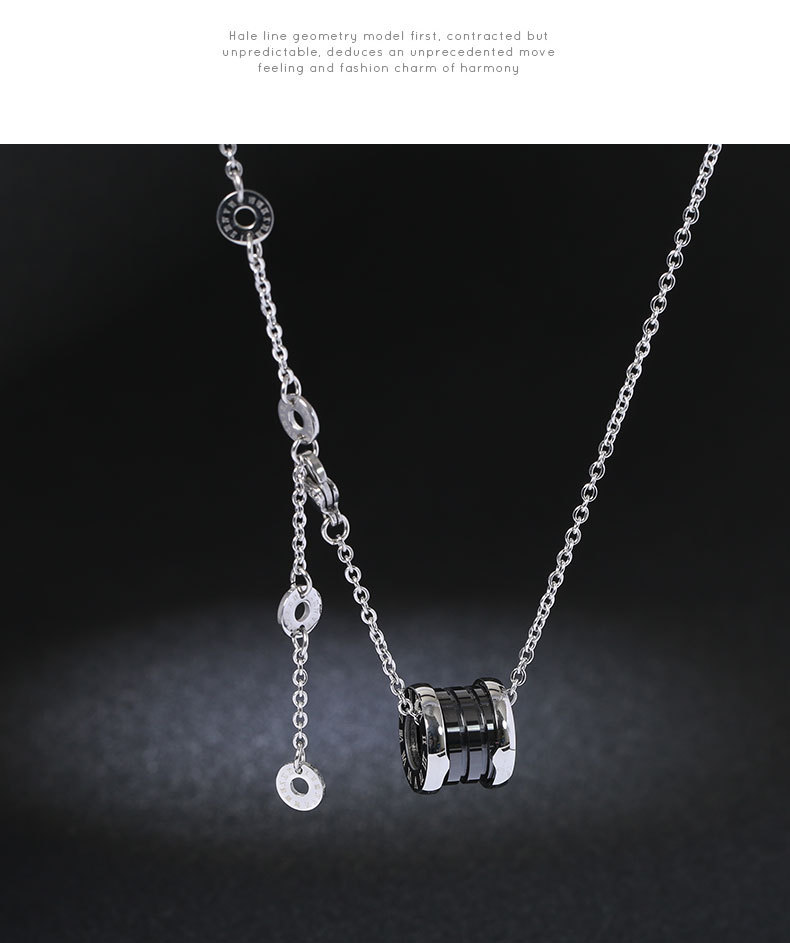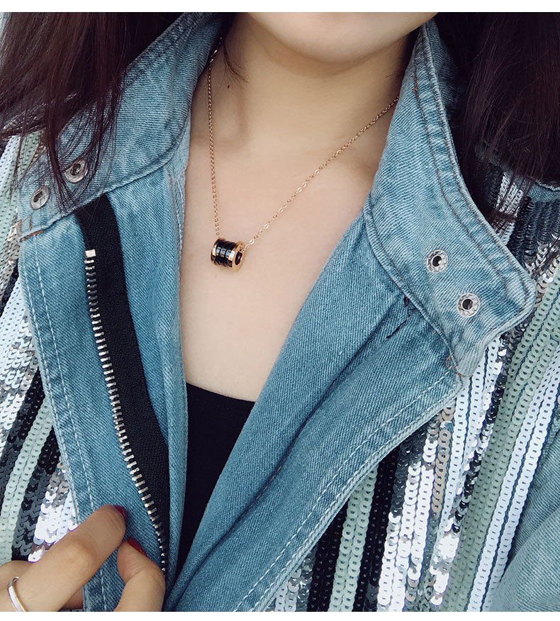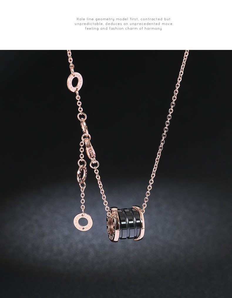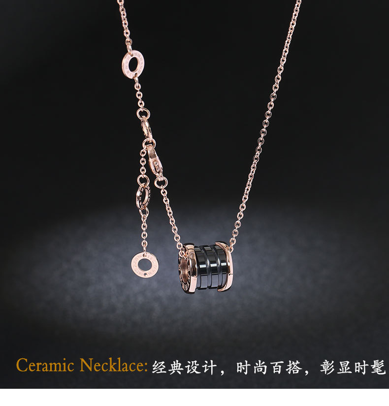 韩版黑陶瓷项链钛钢小蛮腰红人弹簧吊坠女锁骨链简约玫瑰金毛衣链