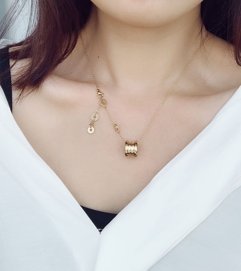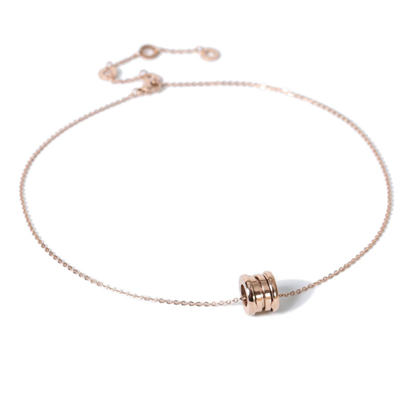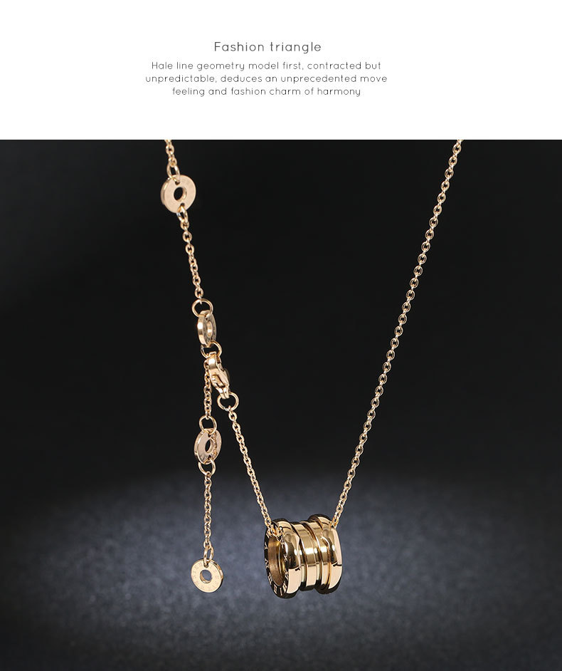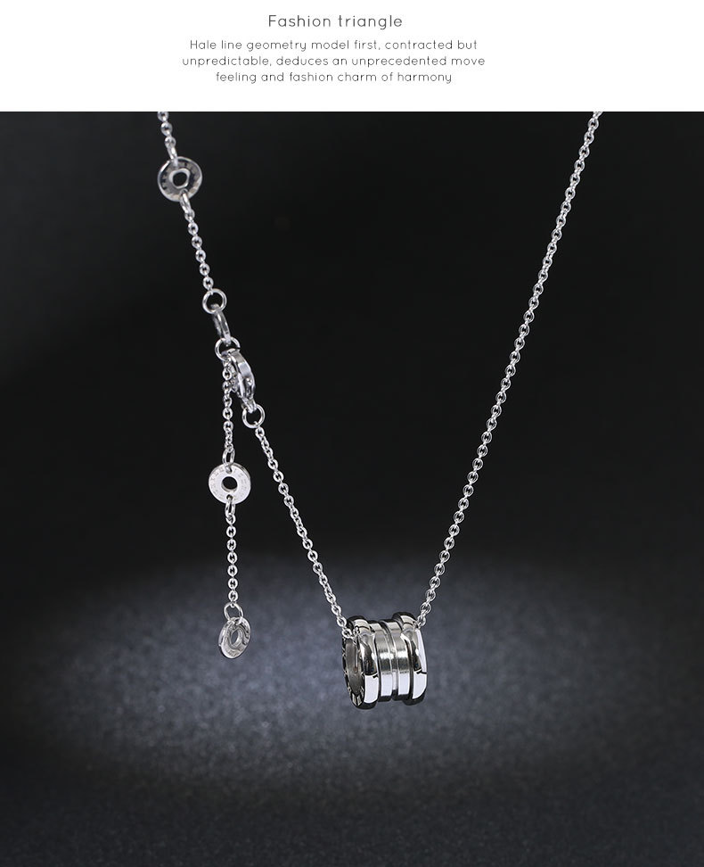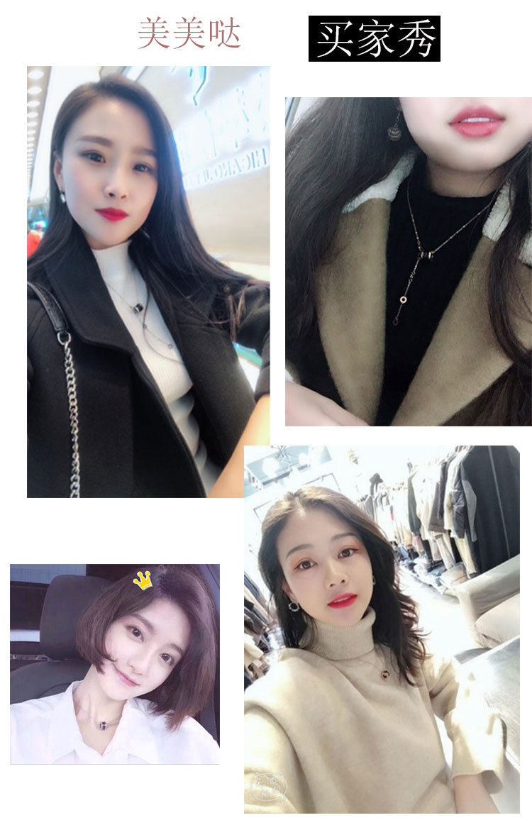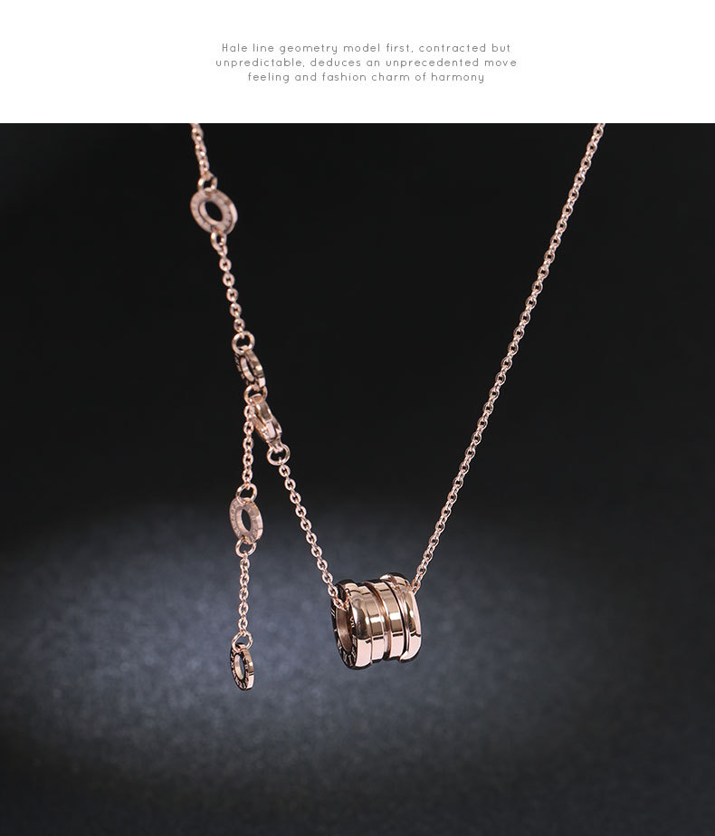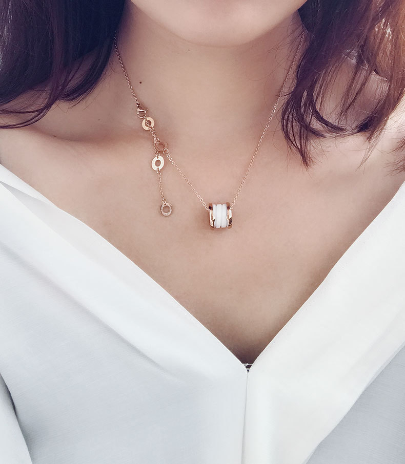 韩版黑陶瓷项链钛钢小蛮腰红人弹簧吊坠女锁骨链简约玫瑰金毛衣链