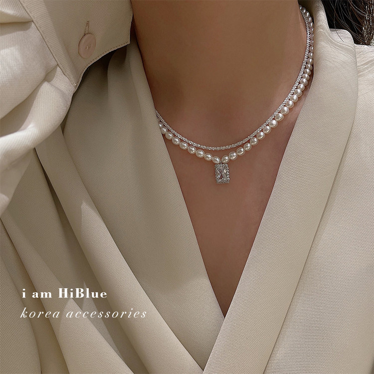 ins小众宝石巴洛克天然淡水珍珠多层满天星项链轻奢首饰毛衣链女