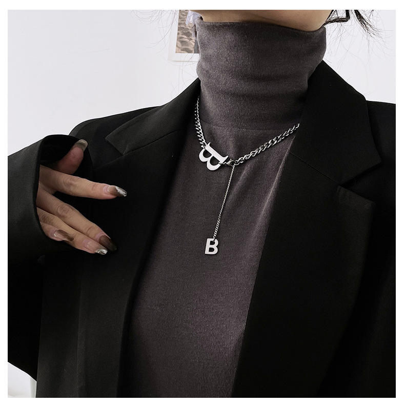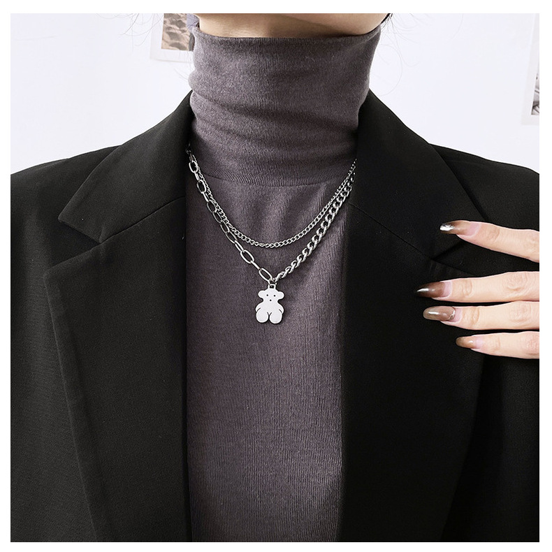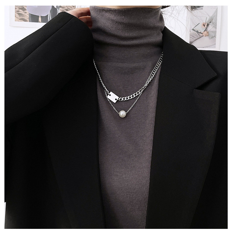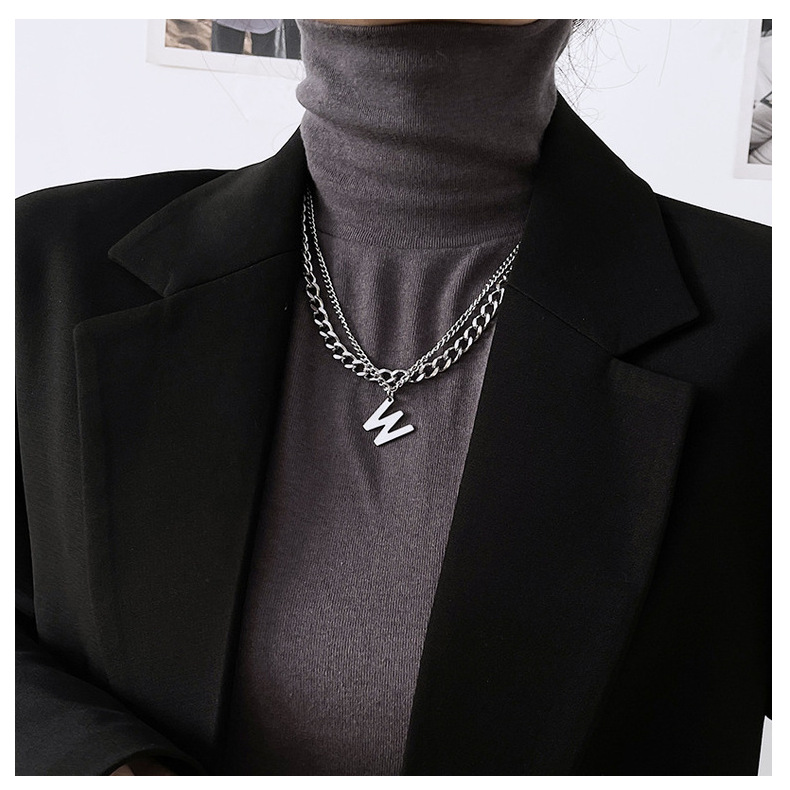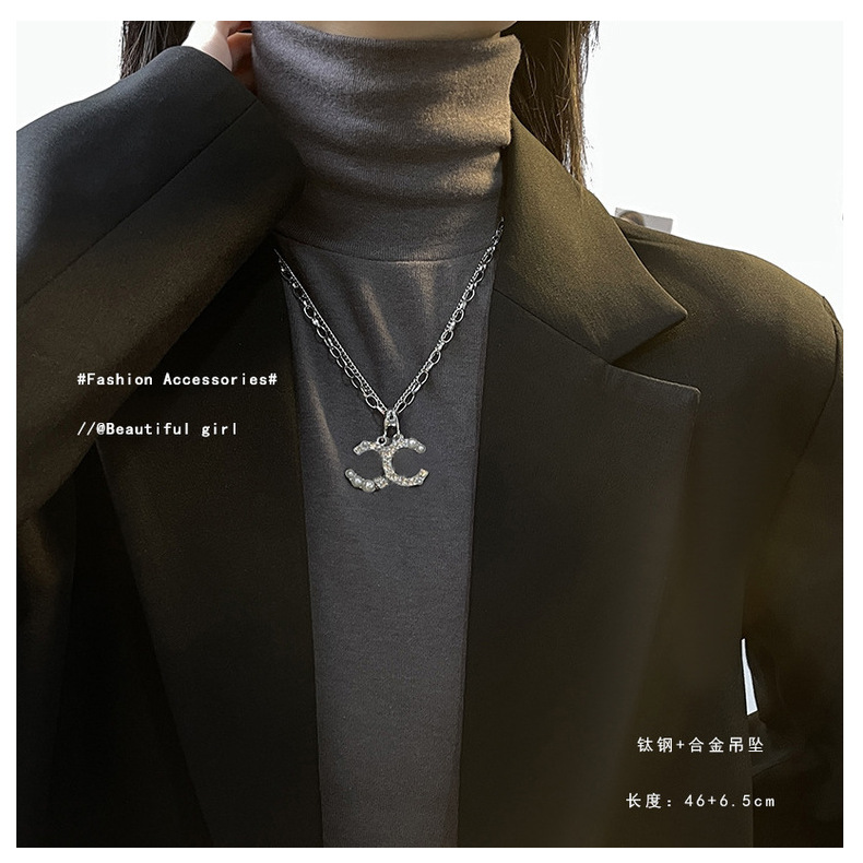 欧美时尚双层毛衣链个性钛钢不掉色网红嘻哈项链女潮人高级感颈链