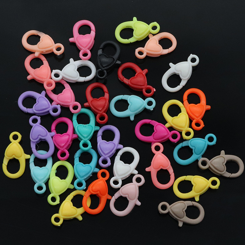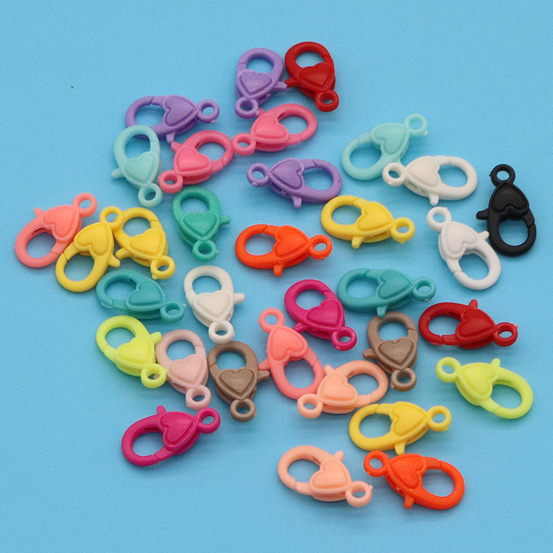 塑料彩色爱心龙虾扣钥匙扣箱包挂件配饰diy饰品配件糖果色桃心扣
