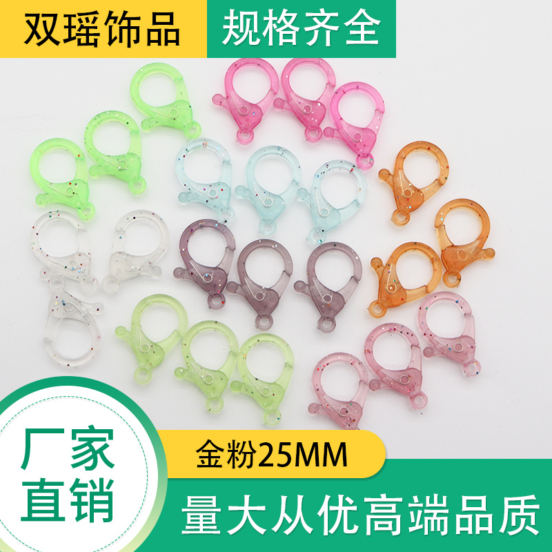 金粉透明塑料龙虾扣25MM塑料链口罩链塑料饰品配件钥匙扣链条扣
