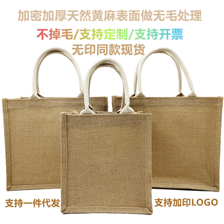 麻布袋现货无印黄麻手提袋复古购物礼品广告包装袋亚麻良品包批发