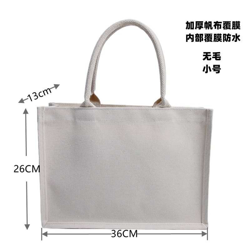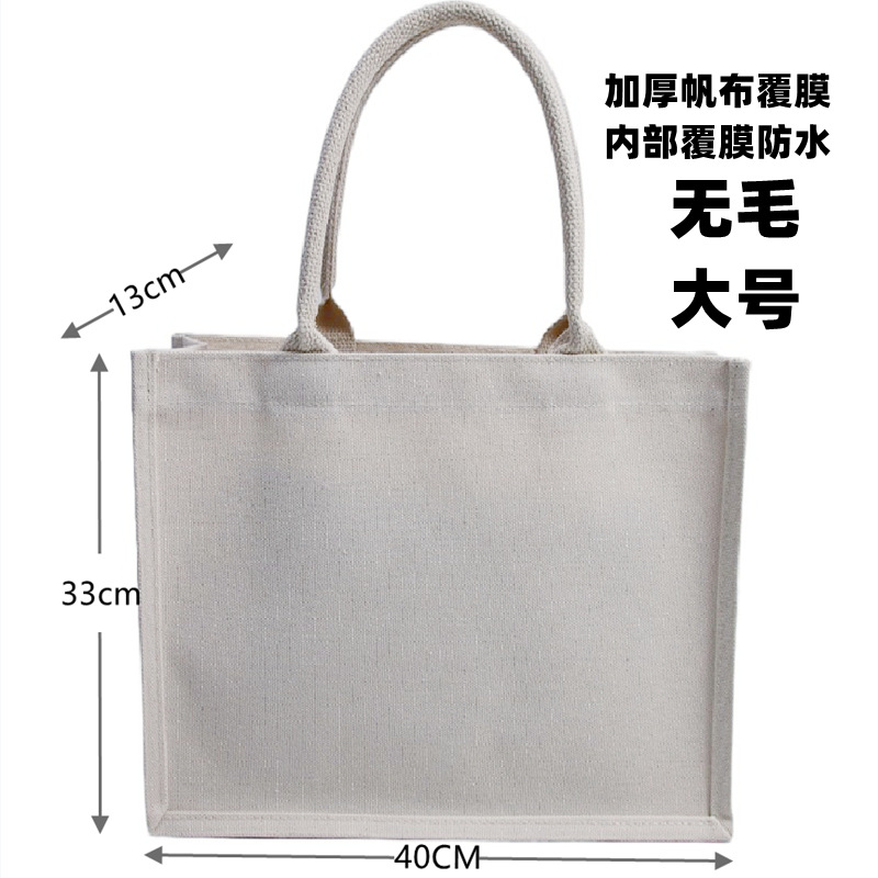 材料:进口天然黄麻PE覆膜防水。手提是织带包芯。