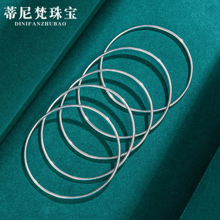 三生三世银手镯女纯银S999足银批发简约年轻款手环光面实心细镯子