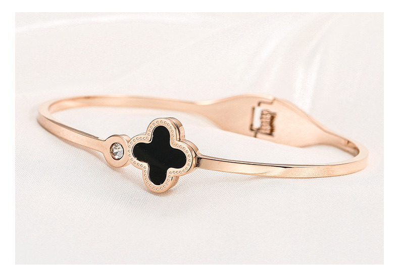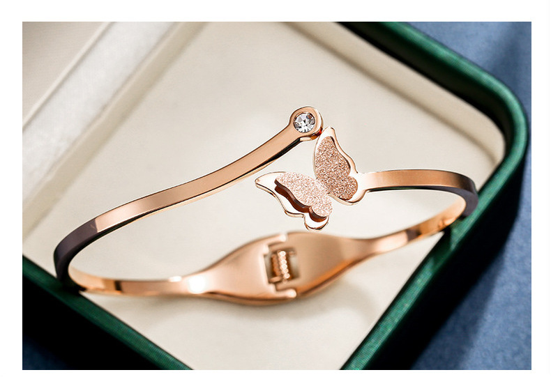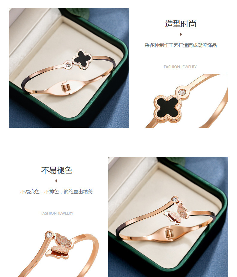 不掉色简约四叶草钛钢手镯女18k玫瑰金卡家手环精致磨砂蝴蝶饰品