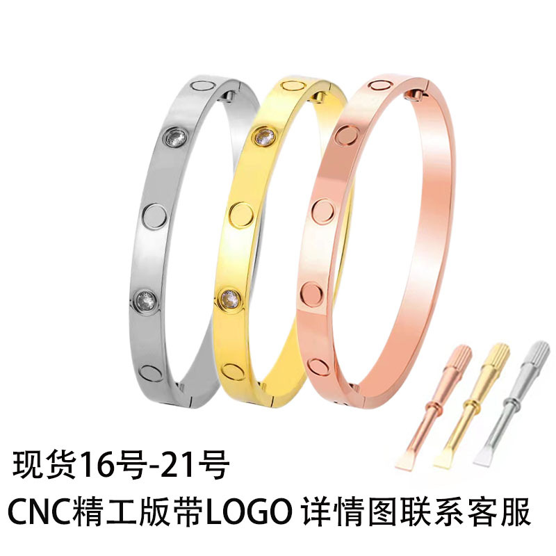 欧美热销男女通用钛钢材质卡家手镯 首饰椭圆形简约纯色 全钉手镯