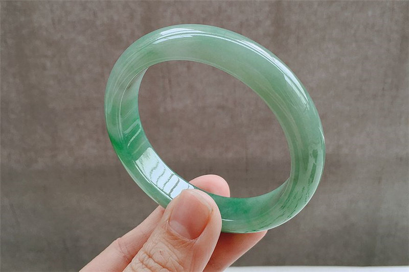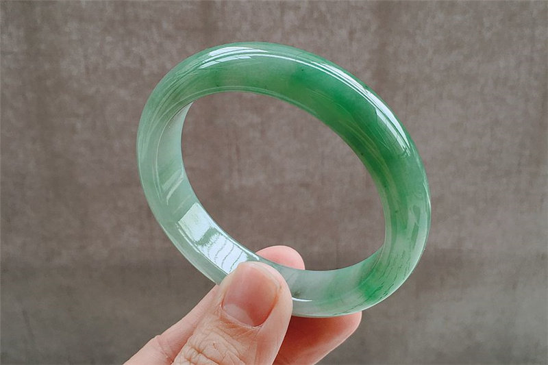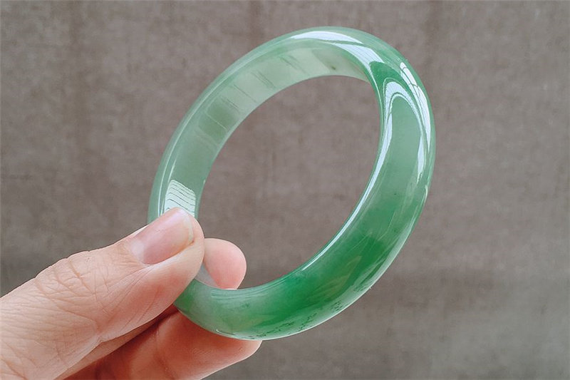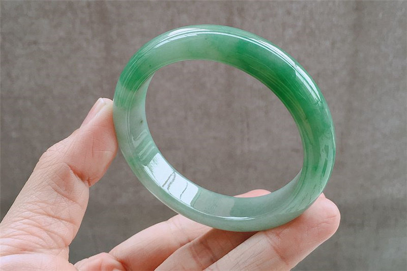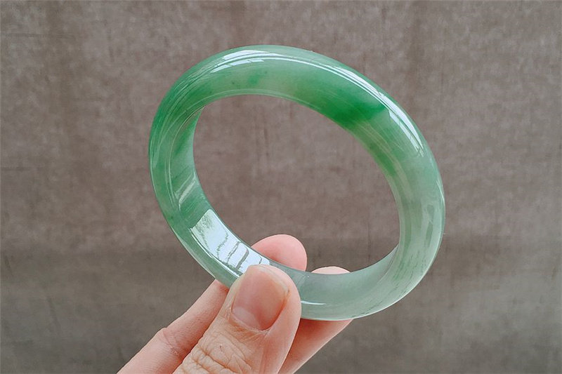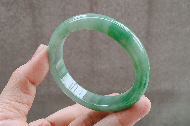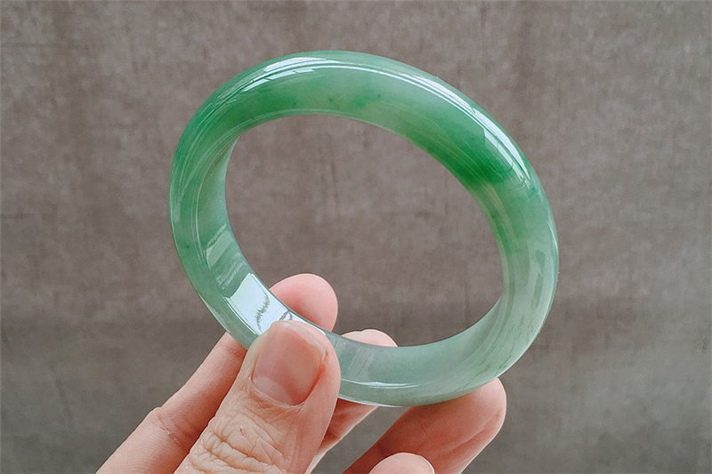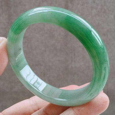 正品天然翡翠手镯 冰种正阳绿缅甸a货玉镯子正圈镯飘花玉手镯