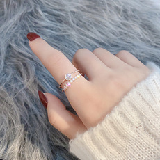 复古珍珠情侣戒指女轻奢ins潮百搭个性戒子气质网红开口可调指环