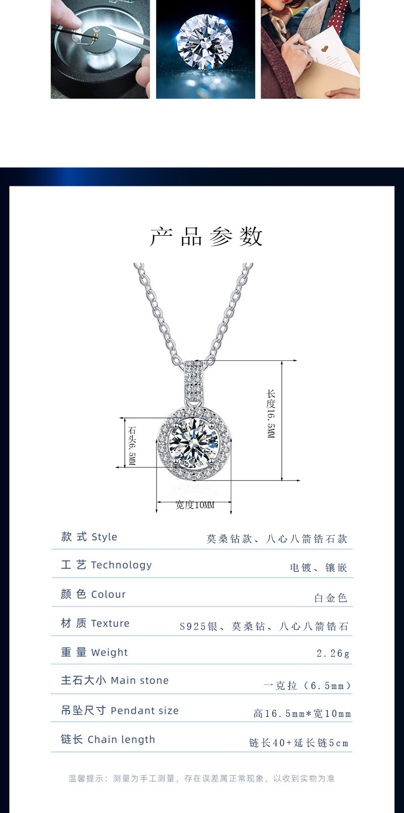 新款S925银圆包锆石项链莫桑吊坠一克拉锁骨套链时尚流行简约饰品