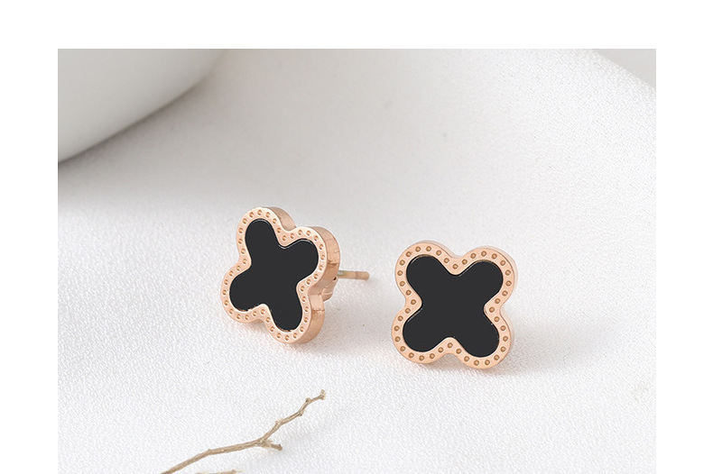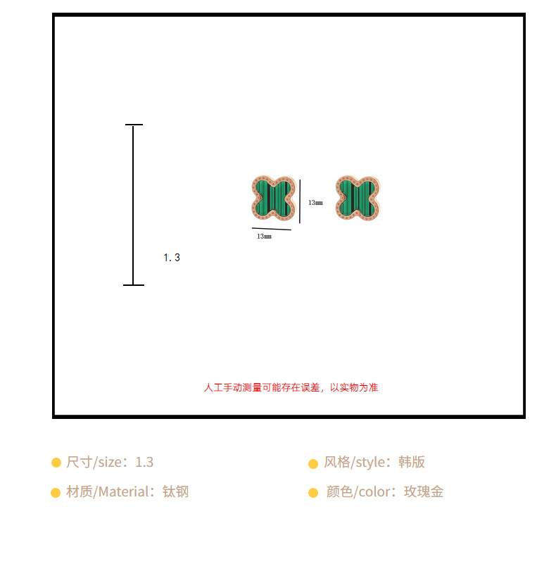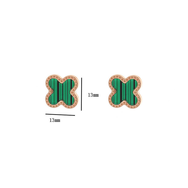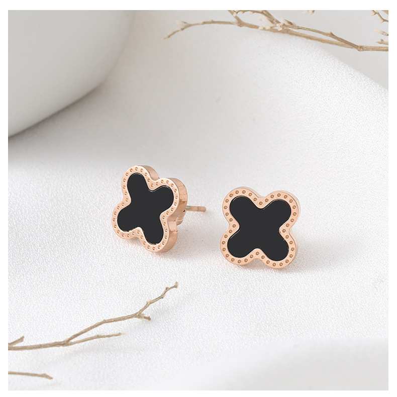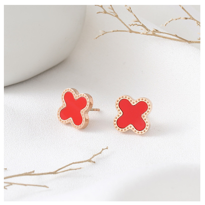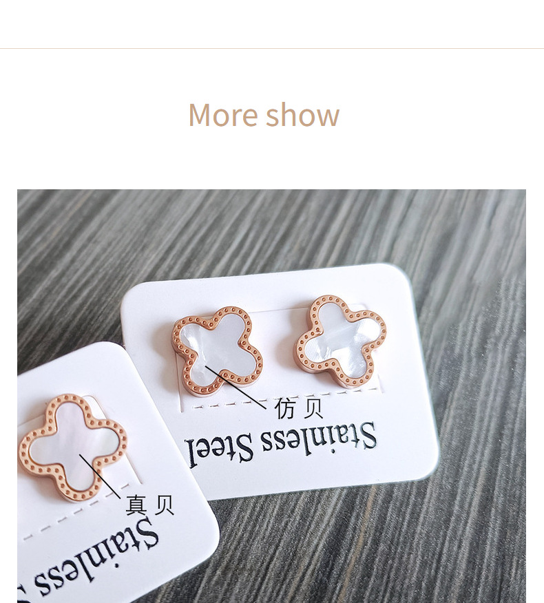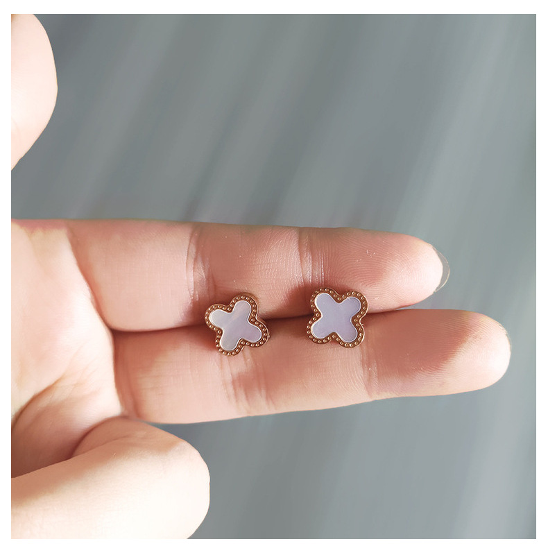 韩版18k玫瑰金钛钢四叶草耳钉女简约贝壳高级感耳饰网红个性耳环