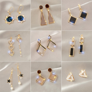 925银针几何珍珠耳环女 时尚耳钉流苏高级感耳坠气质复古耳饰批发