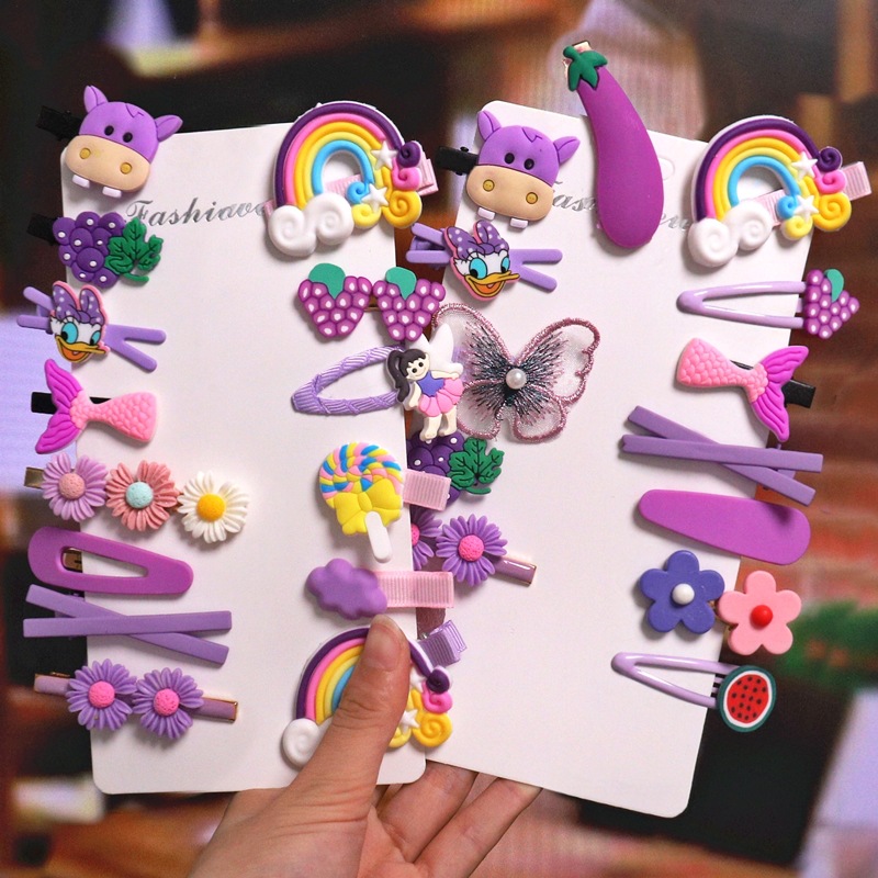韩版彩虹云朵棒棒糖发卡蝴蝶结儿童发夹套装可爱发饰女童刘海边夹