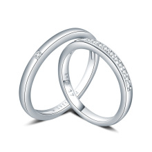 韩国简约流行钻戒婚戒一对s925纯银情侣戒指男女士对戒时尚银饰品