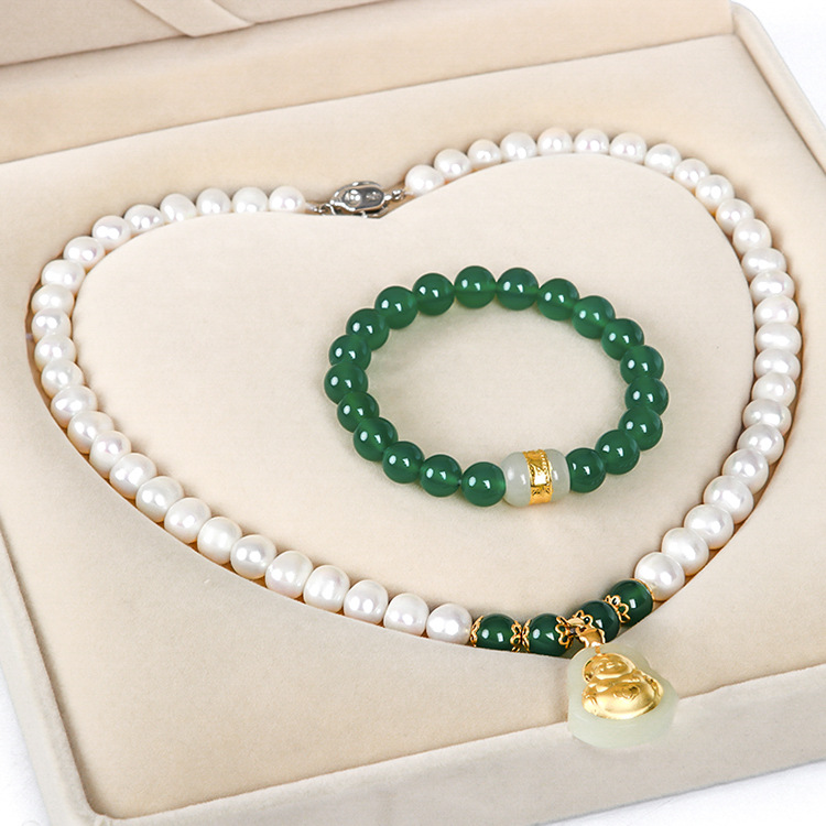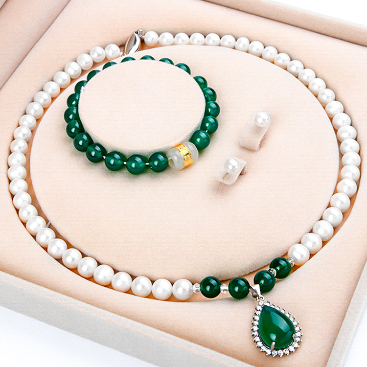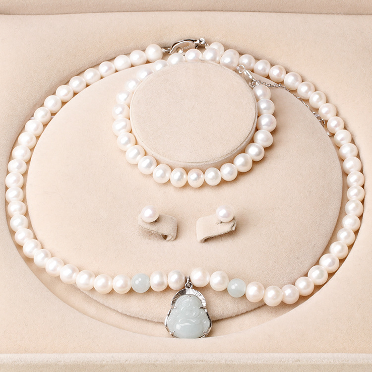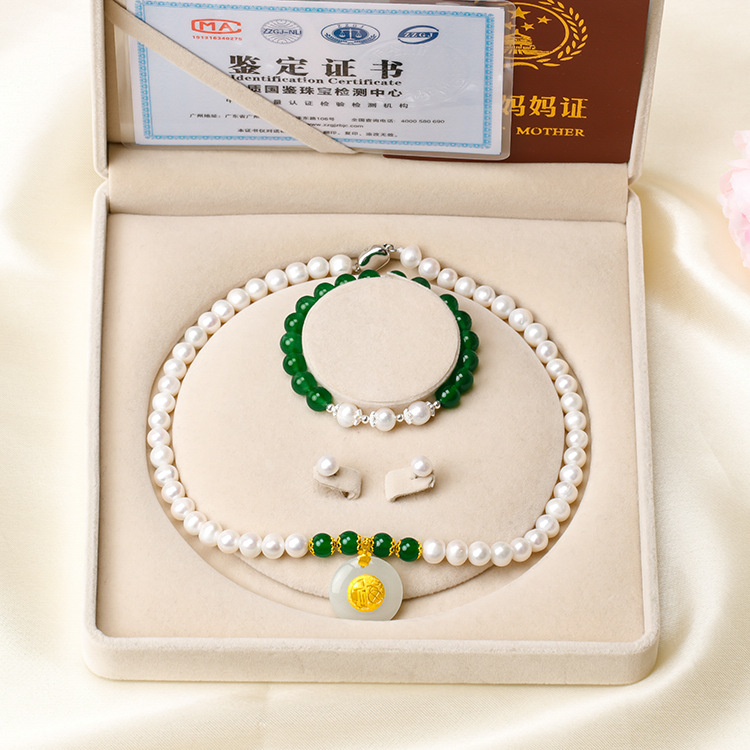 厂家批发天然淡水珍珠项链 珍珠项链母亲节礼物三件套套装