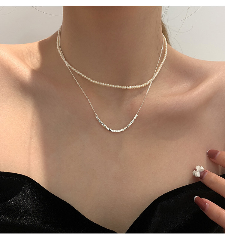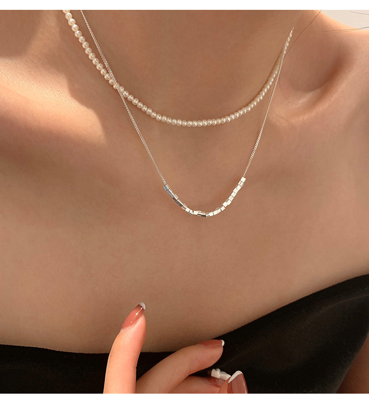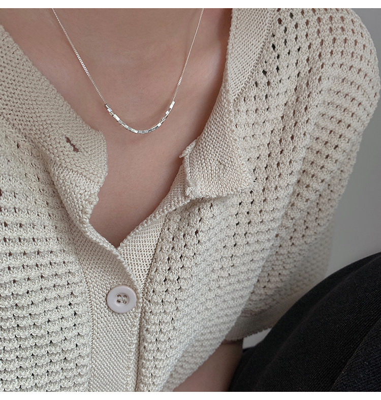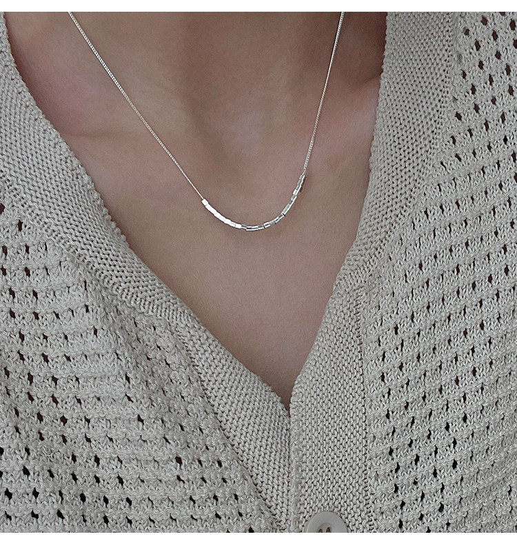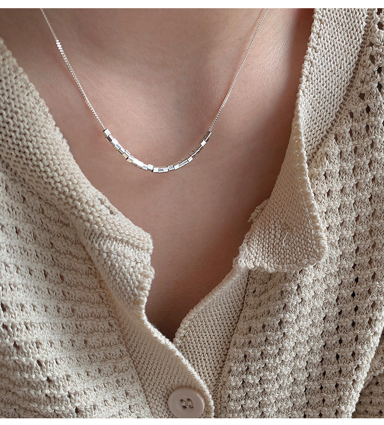 925纯银小方块项链女夏轻奢小众设计装饰百搭锁骨链简约ins