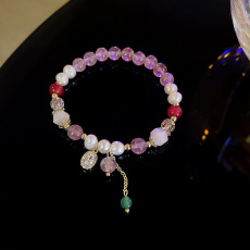 真金电镀巴洛克珍珠手链女ins网红同款玉髓圆珠手串闺蜜礼物手饰