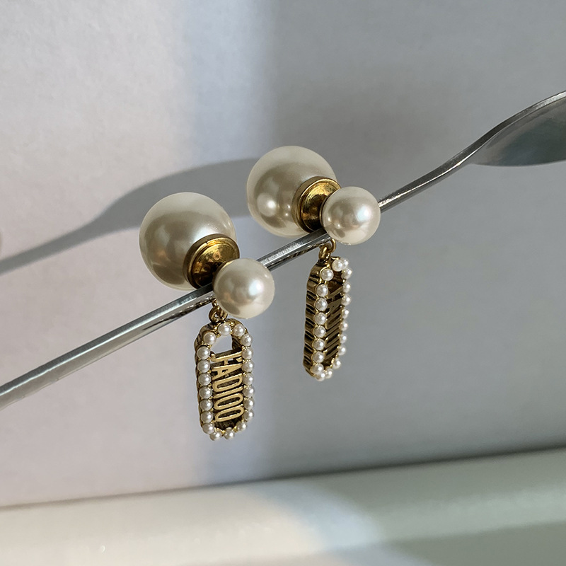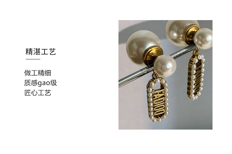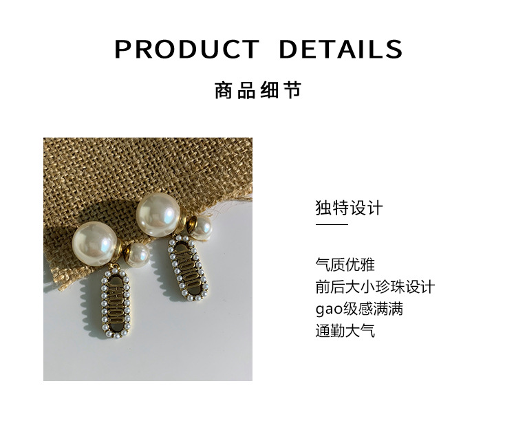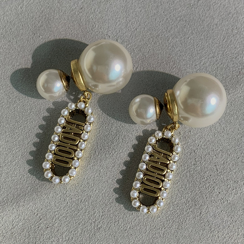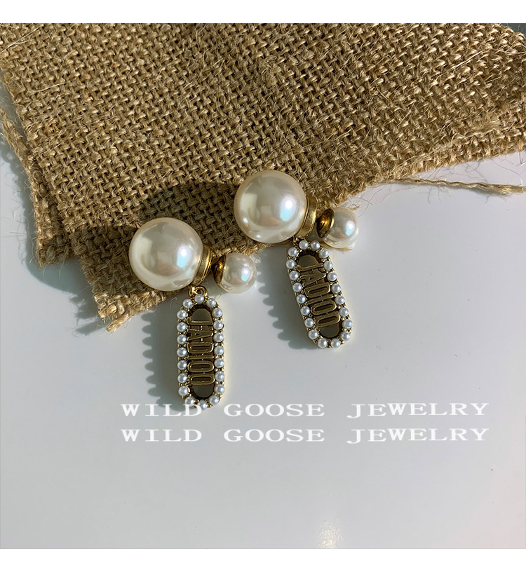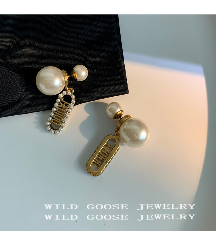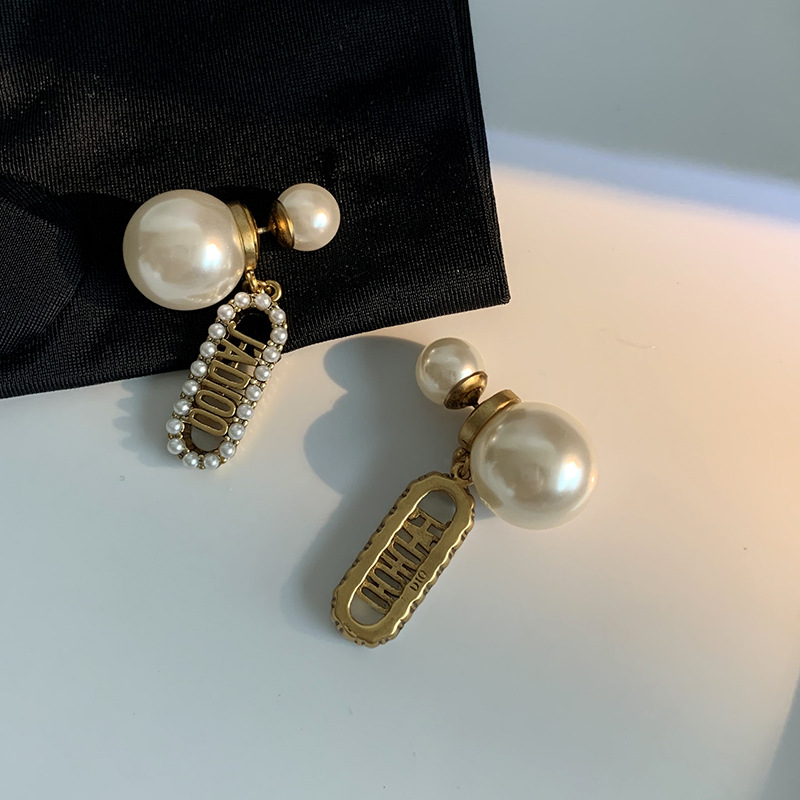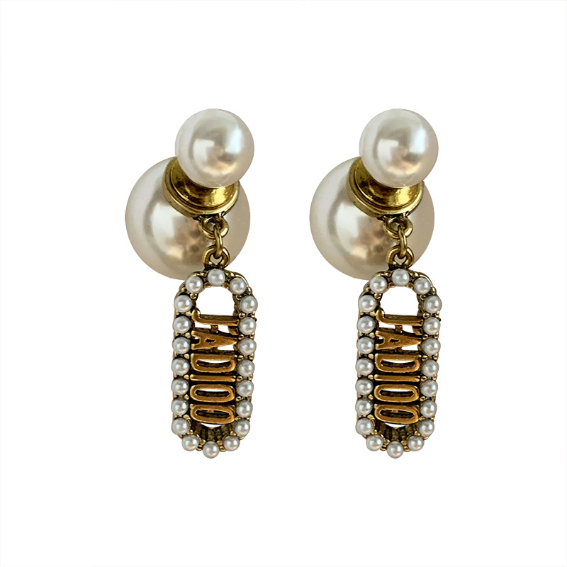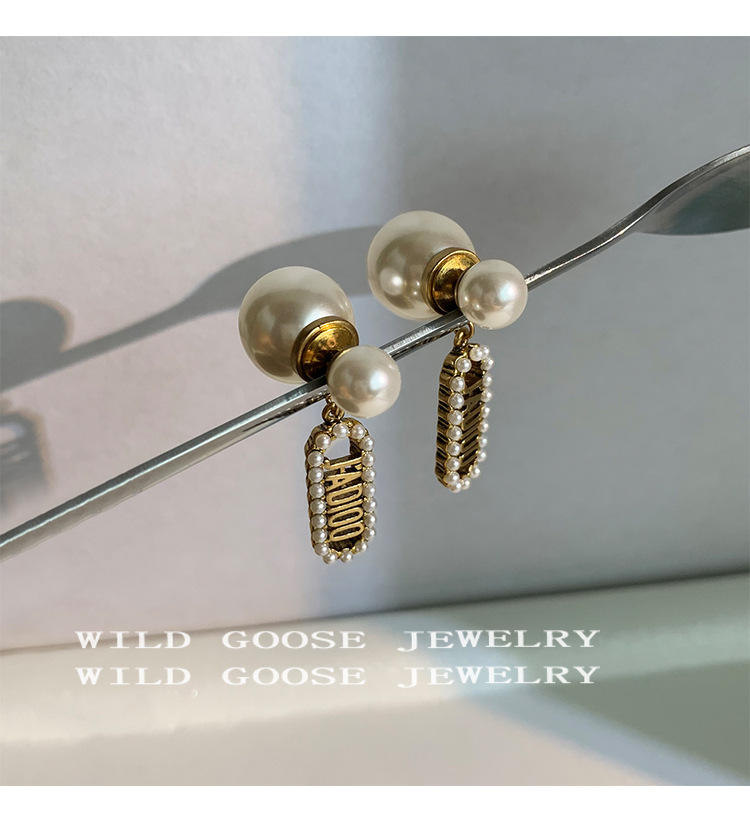 明星同款D迪家前后CD珍珠耳环女925银针耳钉黄铜复古做旧耳饰批发