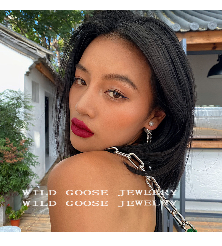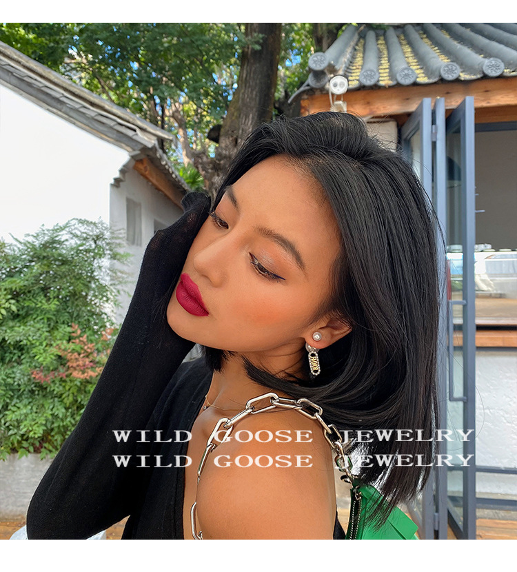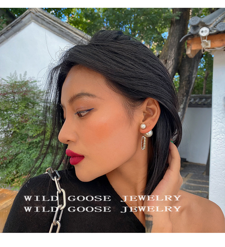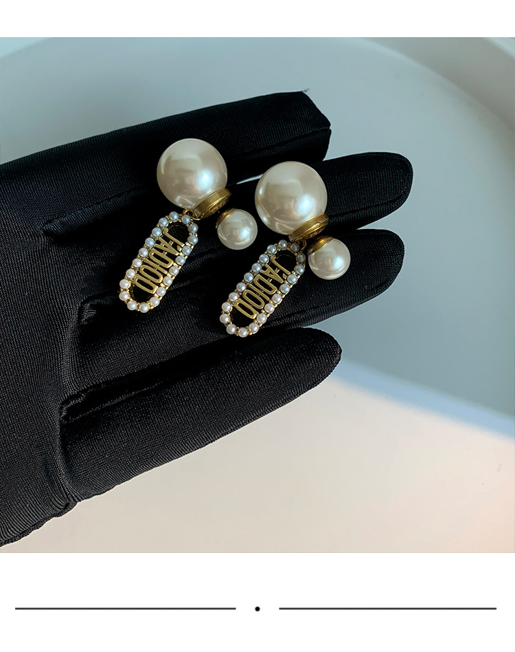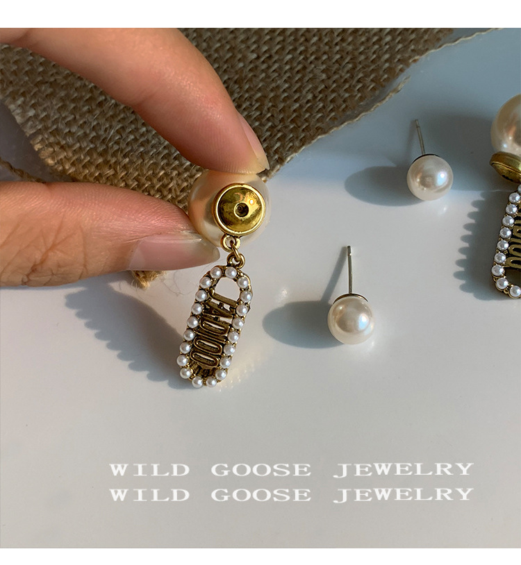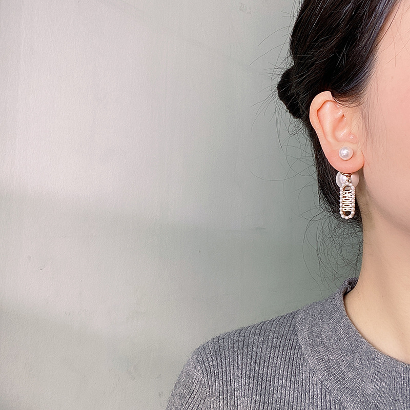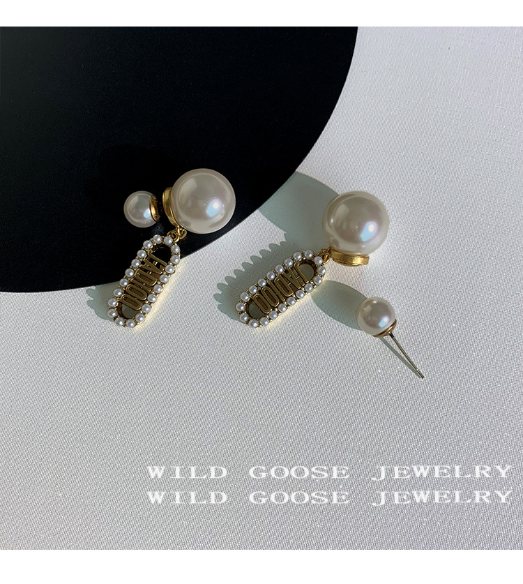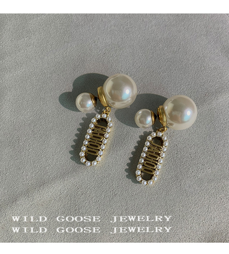 明星同款D迪家前后CD珍珠耳环女925银针耳钉黄铜复古做旧耳饰批发