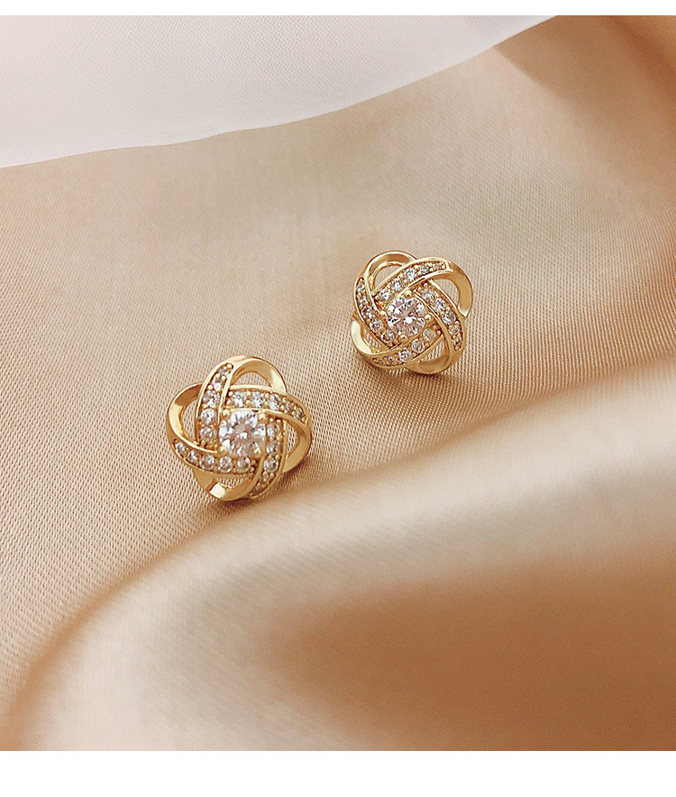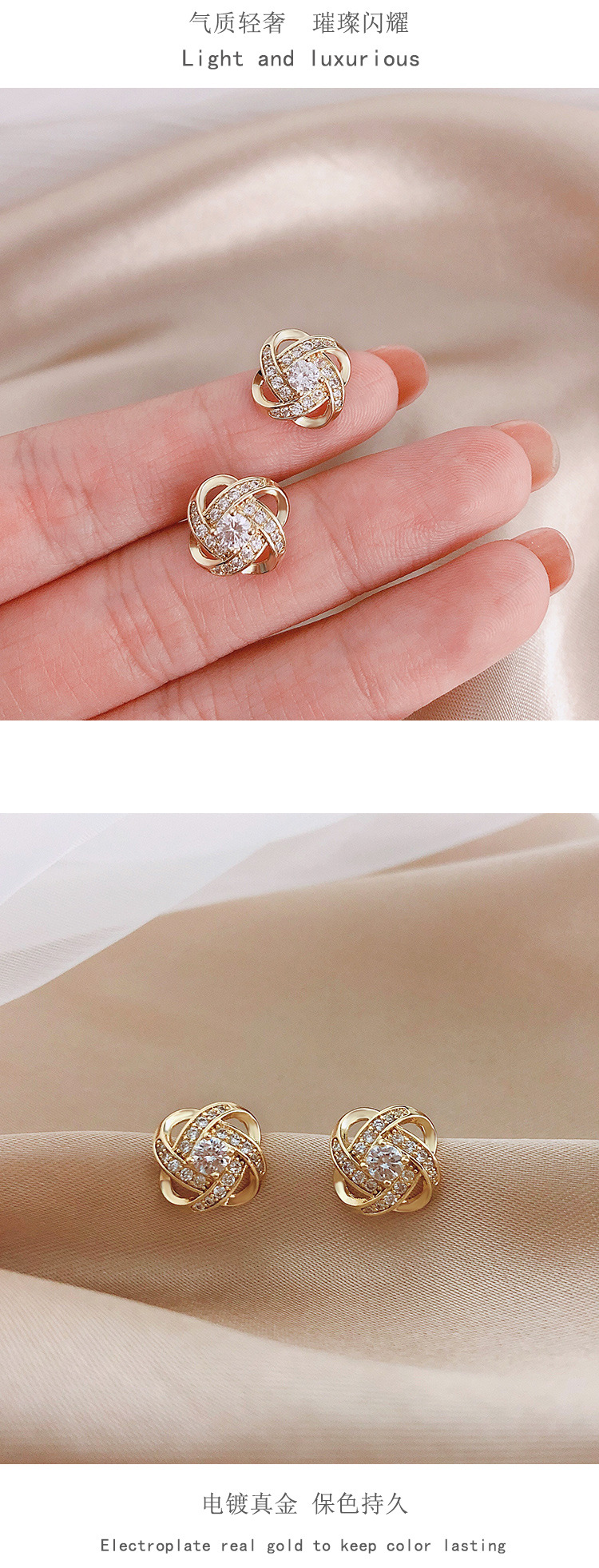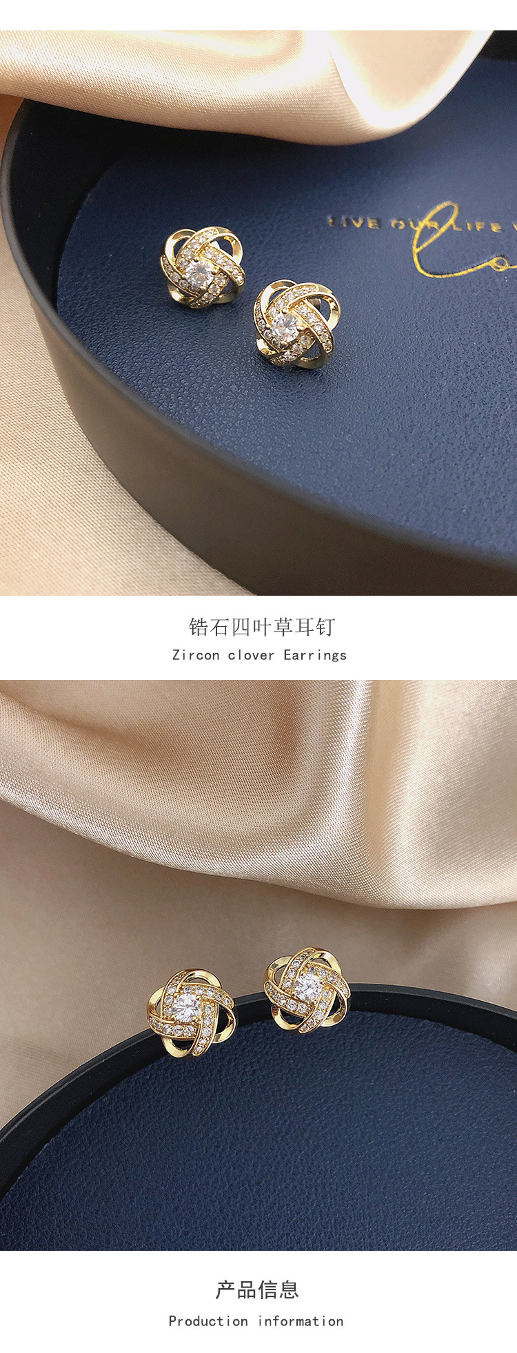 925纯银耳环 气质锆石四叶草耳钉女小众设计感配饰优雅耳饰
