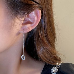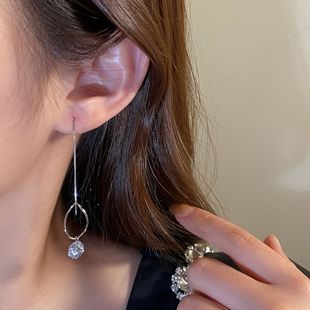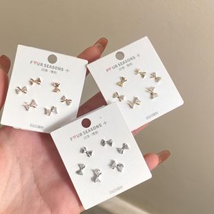 四季情韵S925银针耳饰简约时尚蝴蝶结耳环高级感气质梯方锆石耳坠
