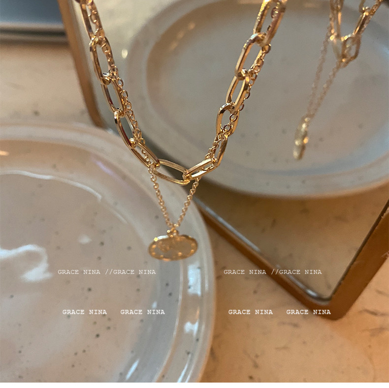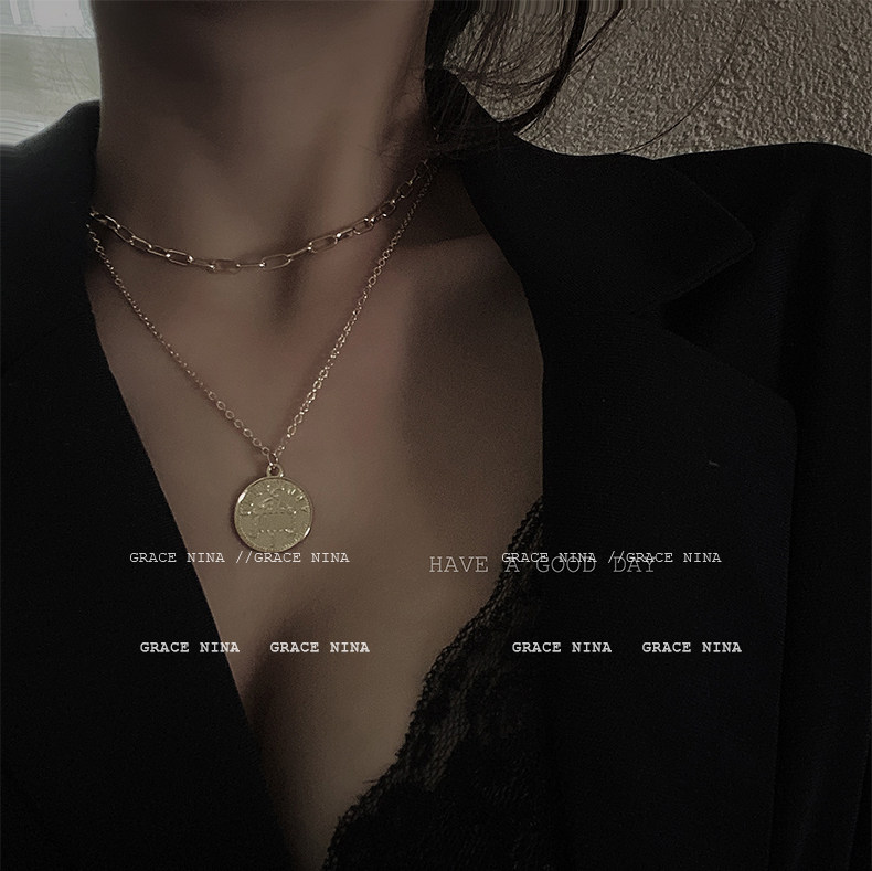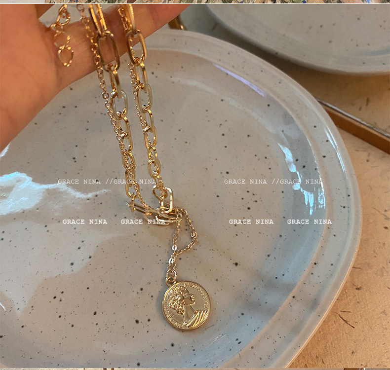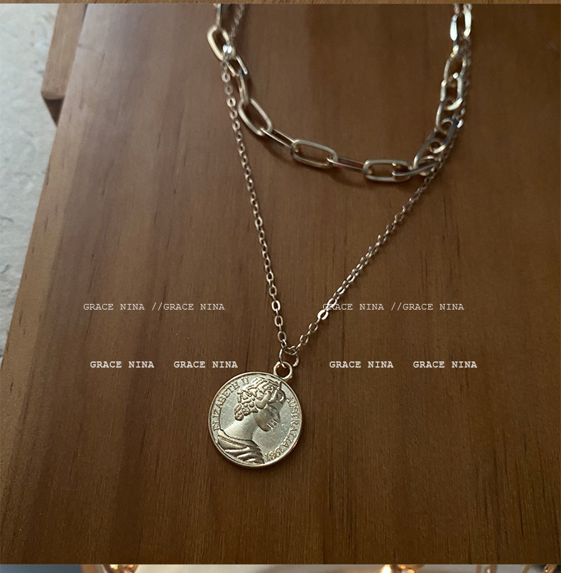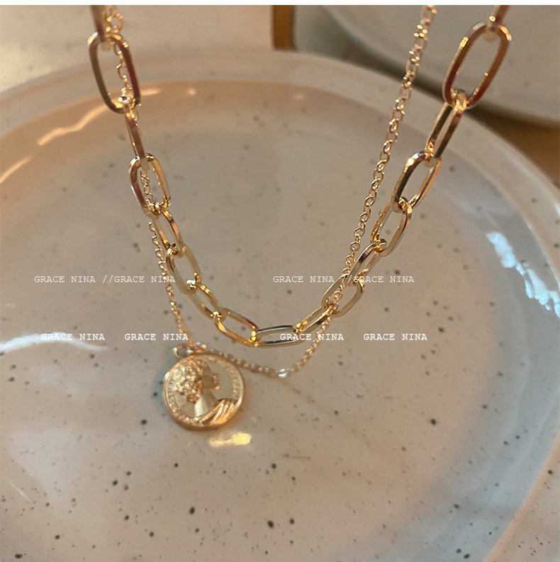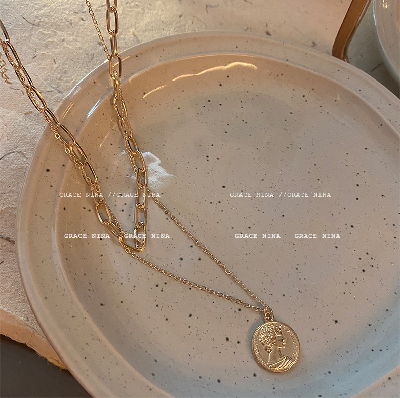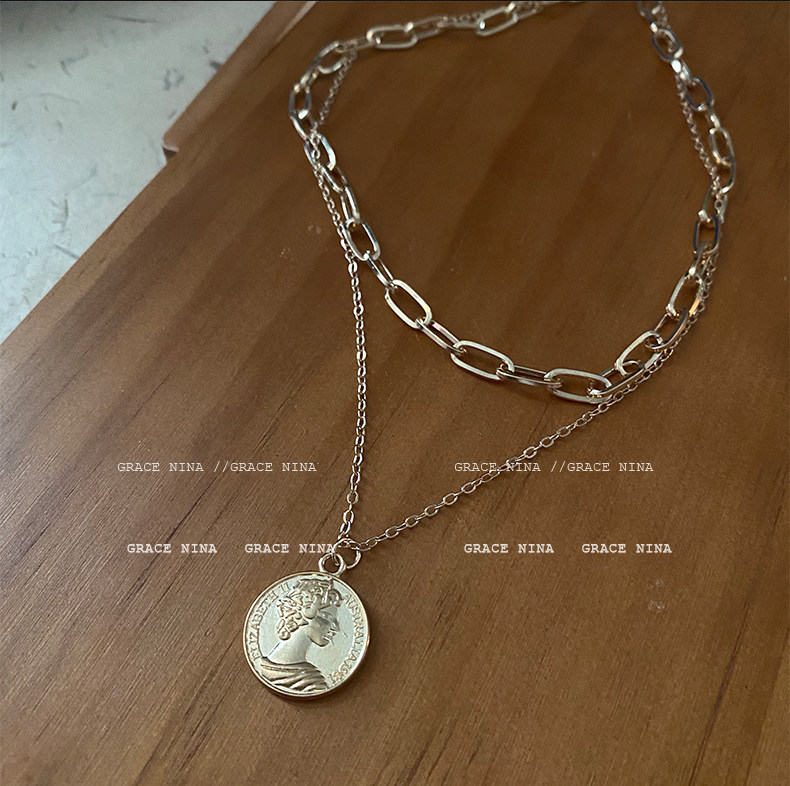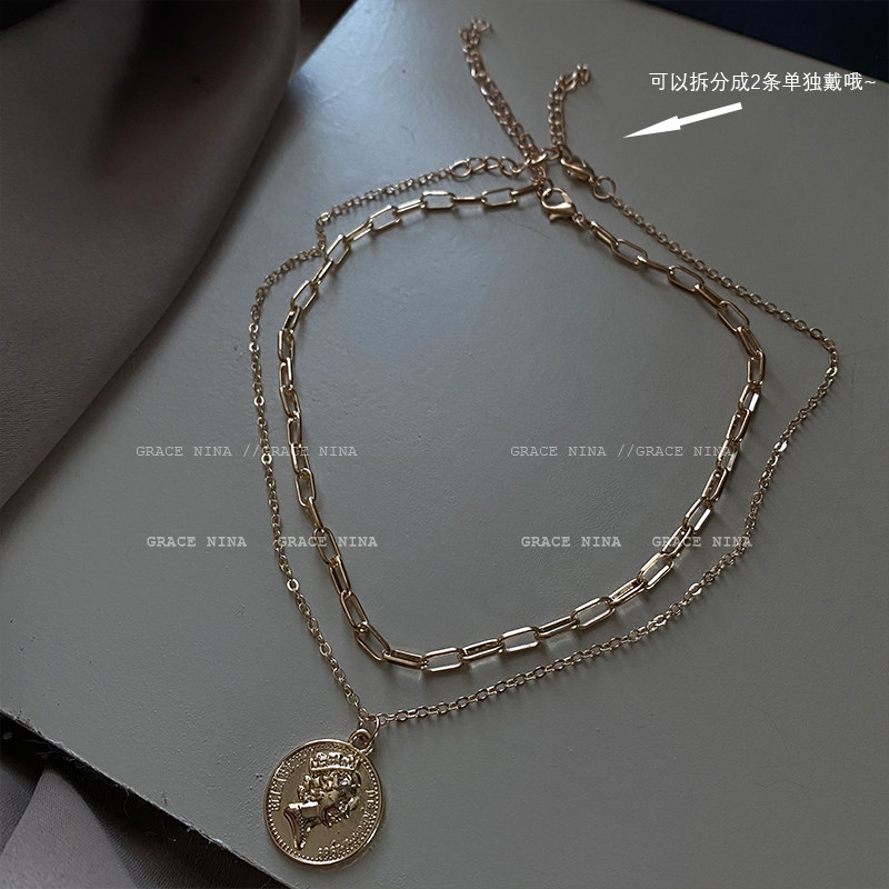 抖音直播爆款!双层女王金币项链个性小众颈链高级感气质欧美冷淡