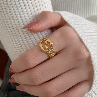 镀18k金戒指女复古镶钻ins简约法式轻奢食指几何开口不规则指环细