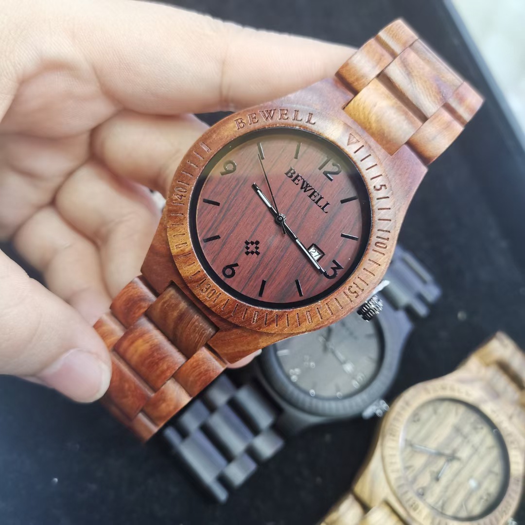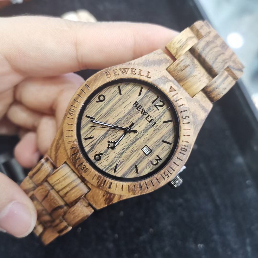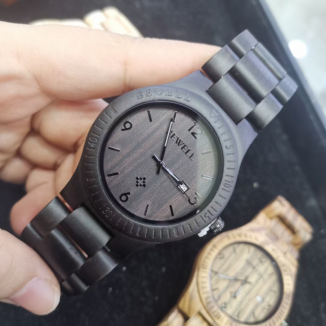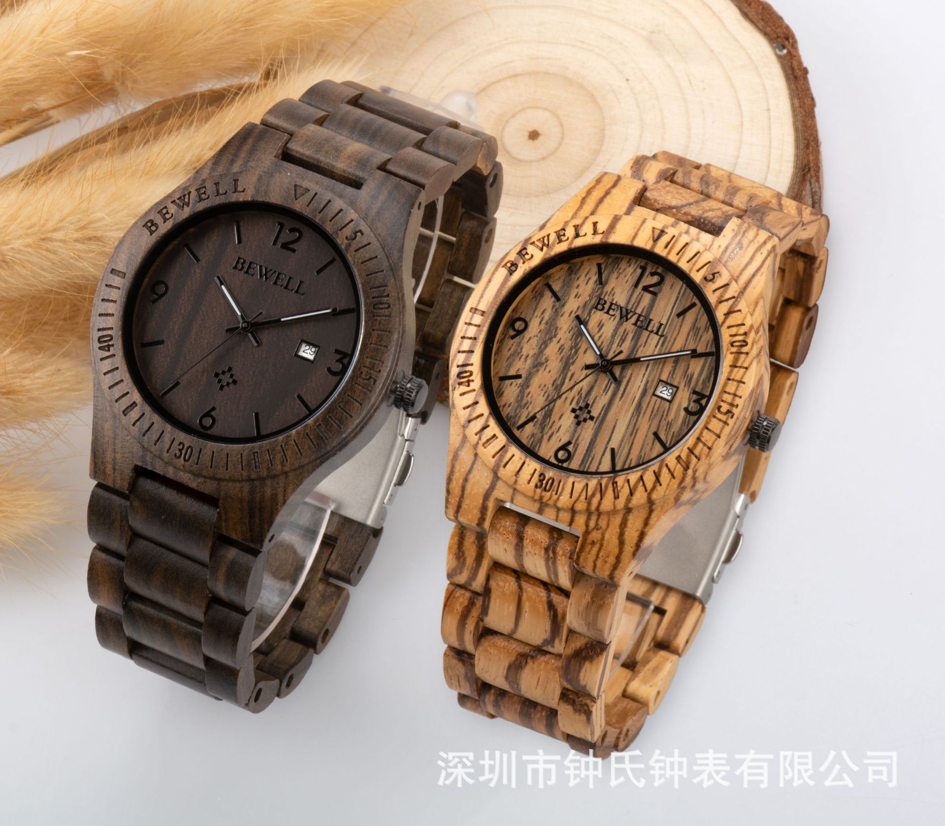 BEWELL时尚男士木手表石英机日历夜光电商现货木表工厂批发有6色
