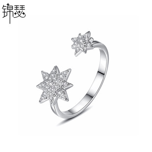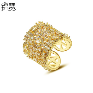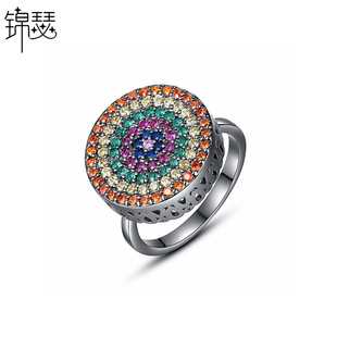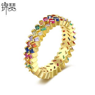 锦瑟 亚马逊排钻几何锆石戒指 欧美时尚彩色锆石彩虹色女戒 指环