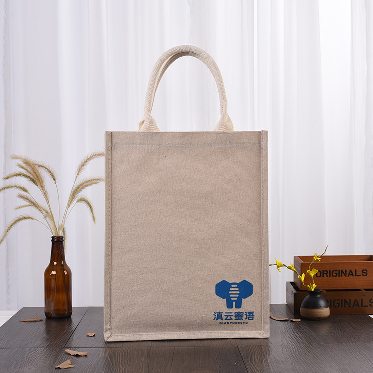 麻布手提袋定 制印logo 覆膜防水广告手提袋黄麻布袋来图定 做