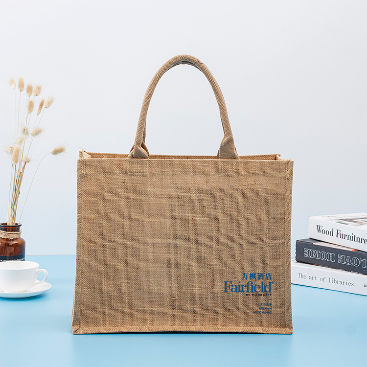 亚麻手袋大容量定 制跨境批发覆膜黄麻袋广告diy购物麻布包麻布袋