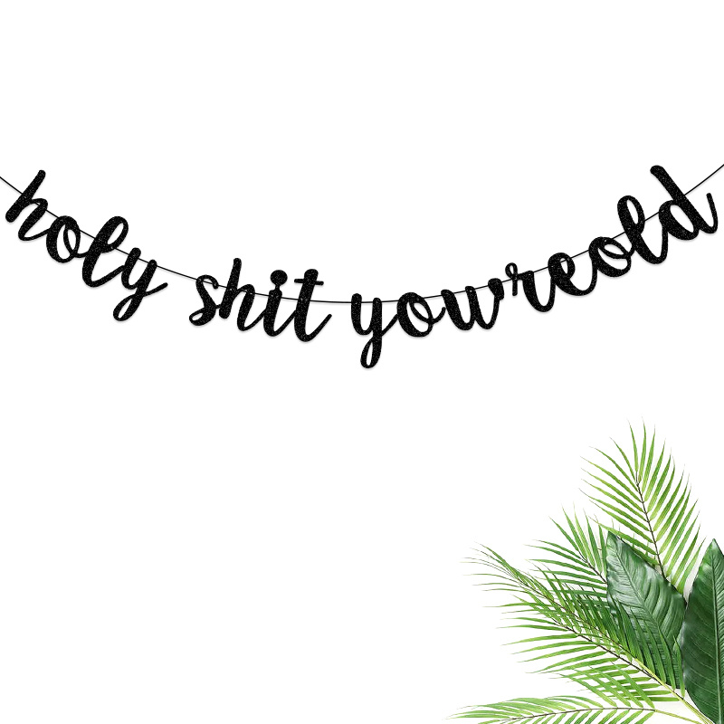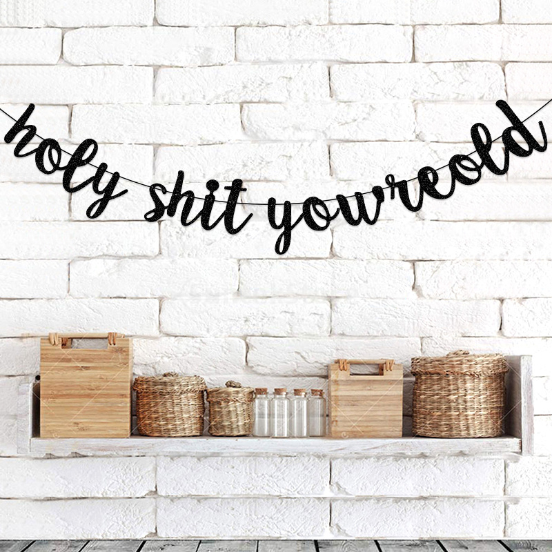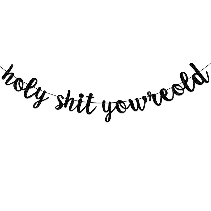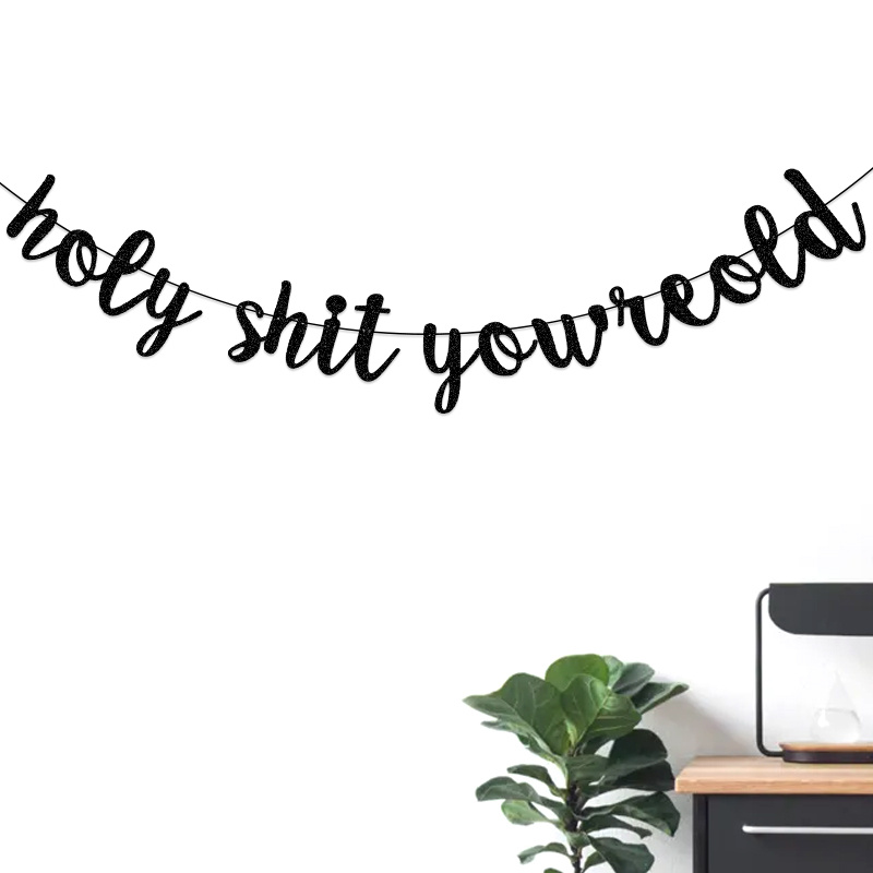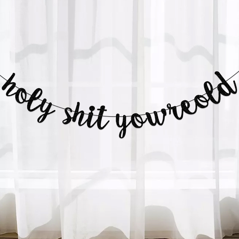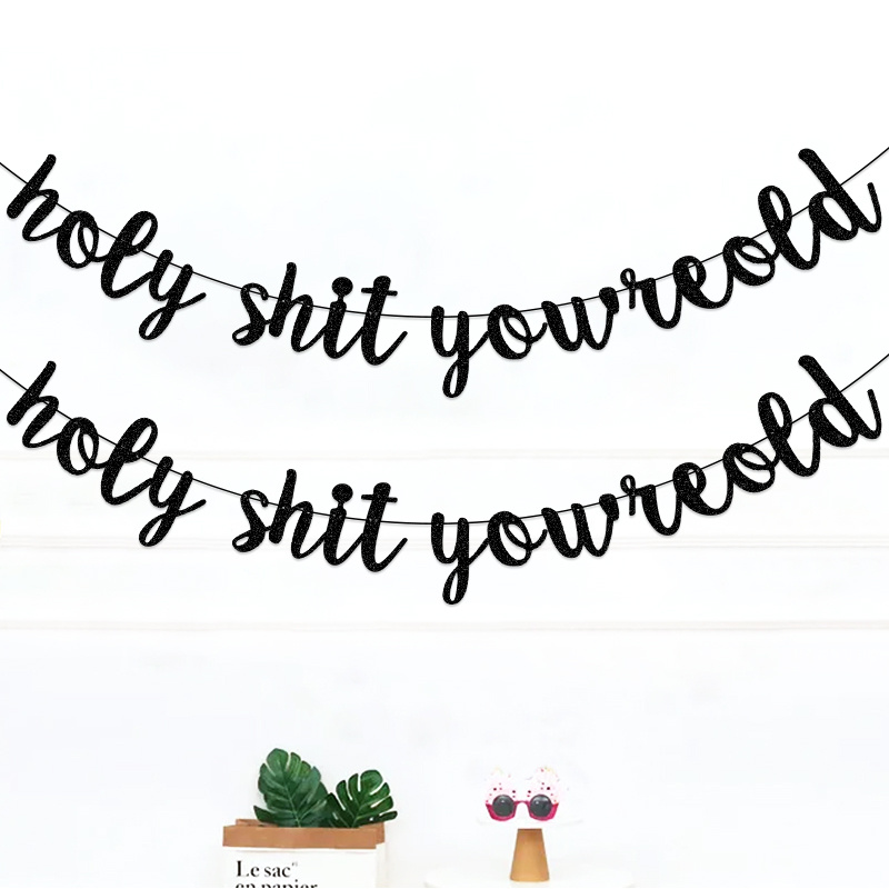 黑色holy shit you're old闪粉拉花横幅有趣的成人生日派对装饰旗