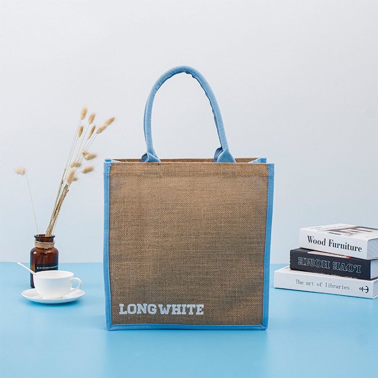 厂家直供复古黄麻布袋 覆膜防水手提麻布袋帆布侧边来图印刷LOGO